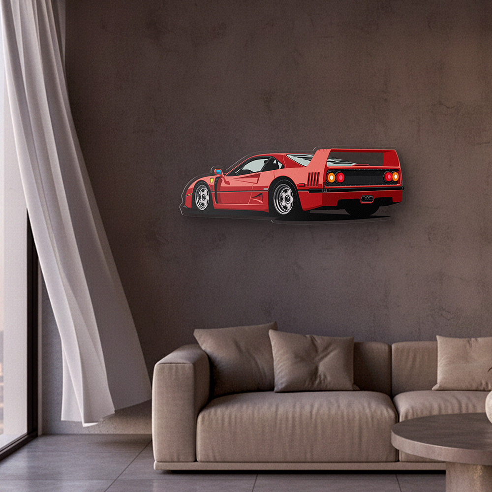 Dieser auffällige F40 Heckwinkel Acrylglasdruck verleiht Ihrem Raum, Büro oder Ihrer Garage einen Hauch von Lebendigkeit und Eleganz und zieht garantiert die Aufmerksamkeit jedes Rennsport- oder Auto-Enthusiasten auf sich.