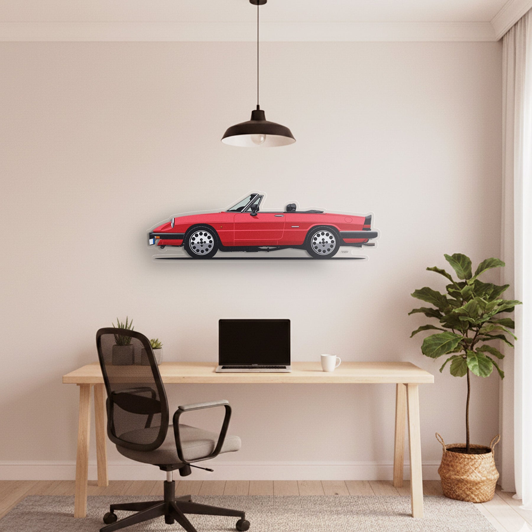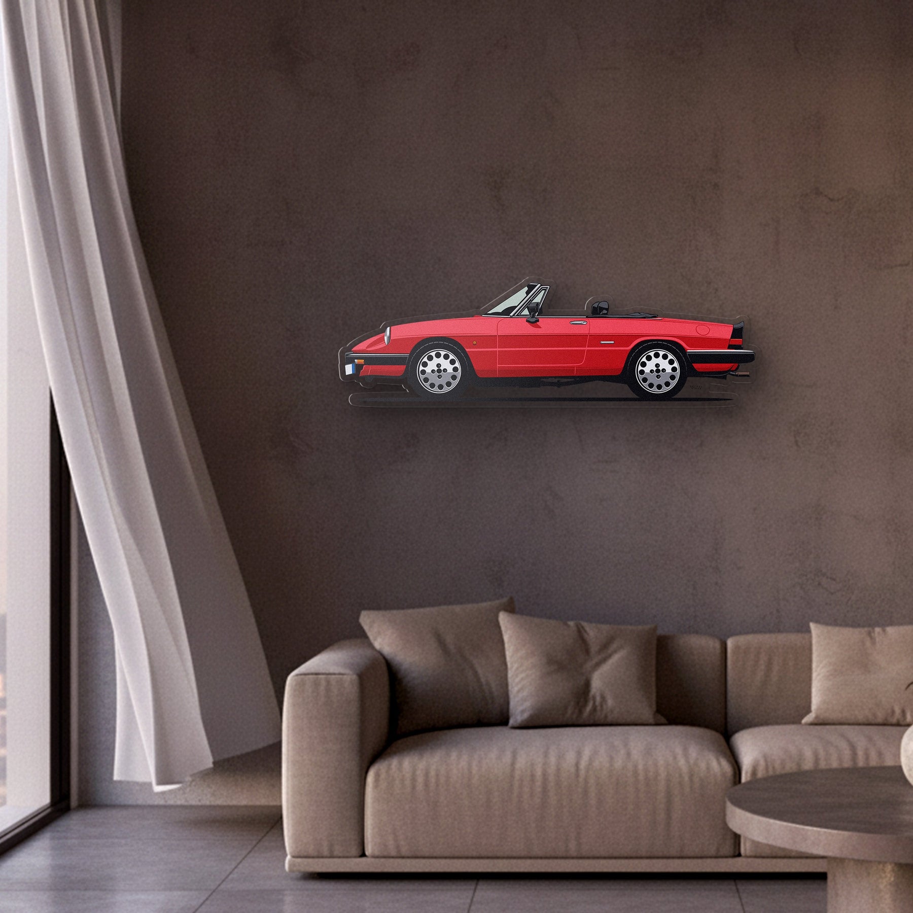 Dieser auffällige Spider s3 Acrylglasdruck verleiht Ihrem Raum, Büro oder Ihrer Garage einen Hauch von Lebendigkeit und Eleganz und zieht garantiert die Aufmerksamkeit jedes Rennsport- oder Auto-Enthusiasten auf sich.