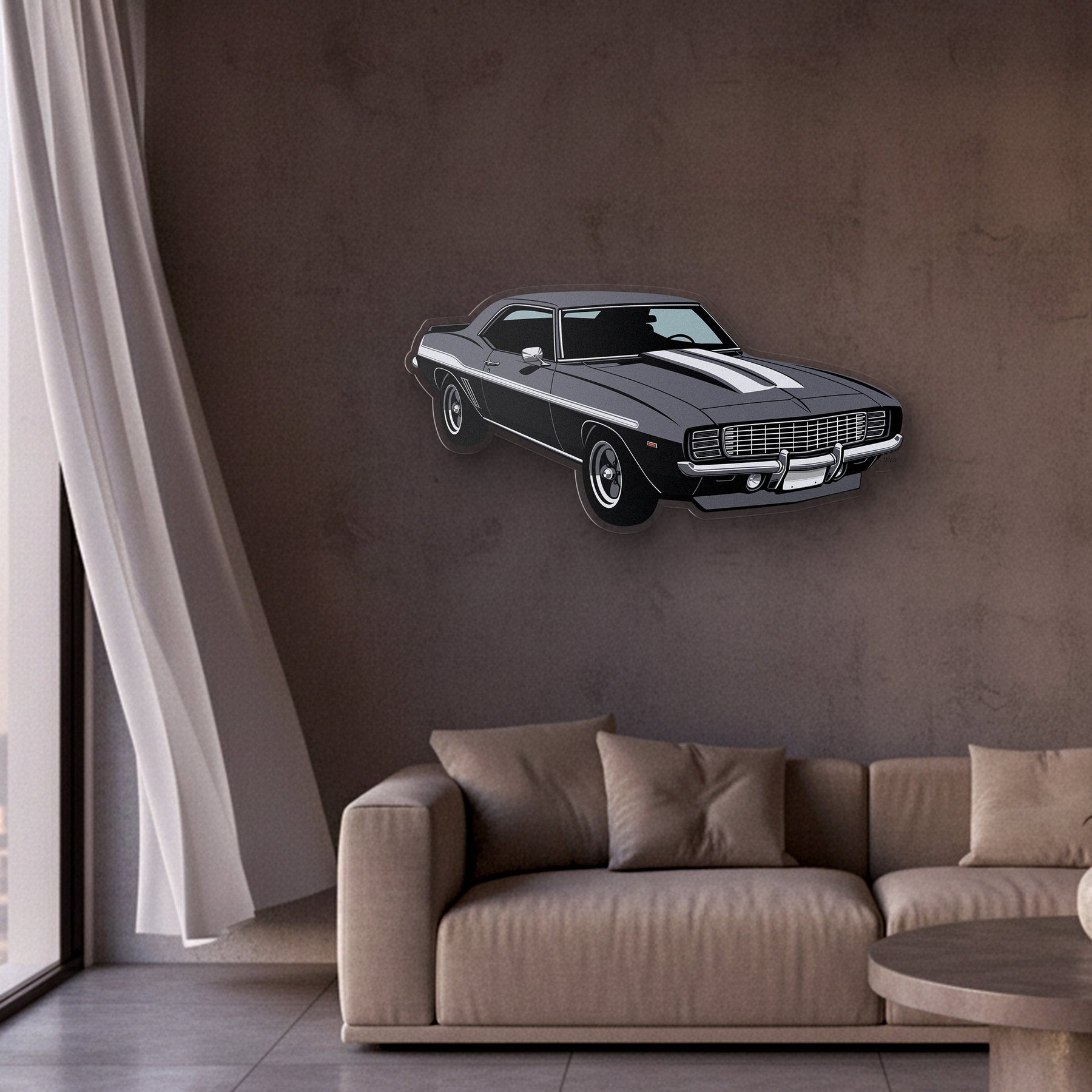 Dieser auffällige Yenko Camaro 1969 Frontwinkel Acrylglasdruck verleiht Ihrem Raum, Büro oder Ihrer Garage einen Hauch von Lebendigkeit und Eleganz und zieht garantiert die Aufmerksamkeit jedes Rennsport- oder Auto-Enthusiasten auf sich.