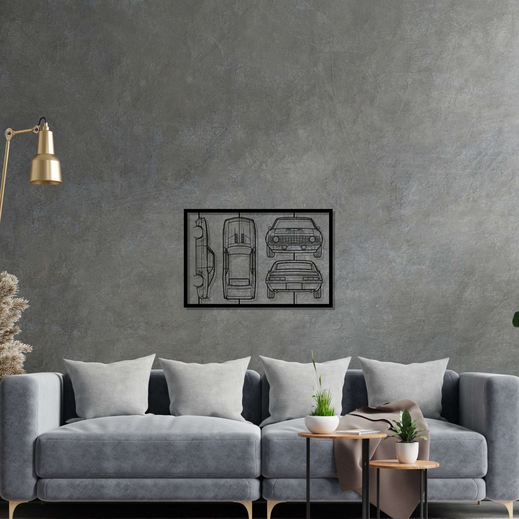 Camaro SS 1969 Wandkunst aus Metall mit Rahmen-Silhouette