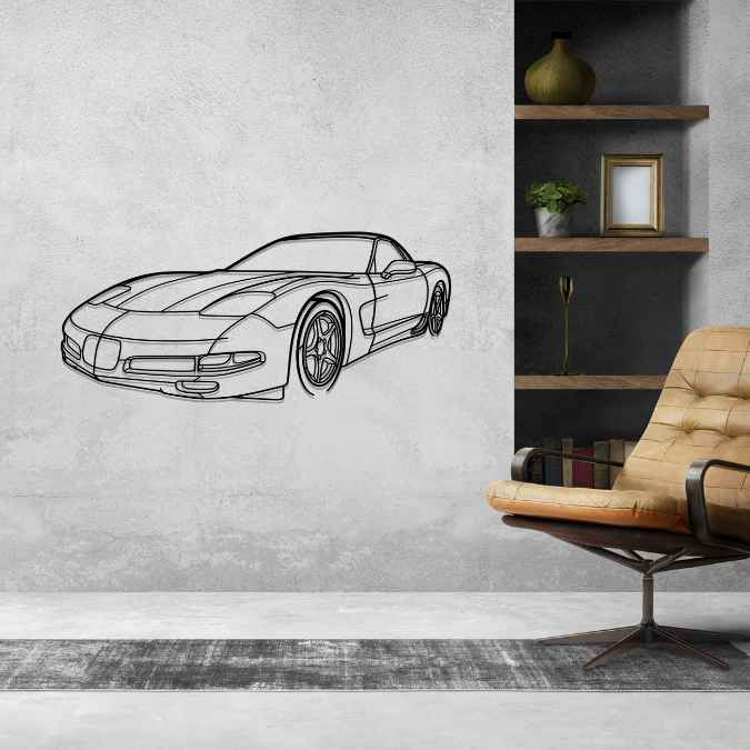 Corvette C5 2002 Winkel-Silhouette-Wandkunst aus Metall