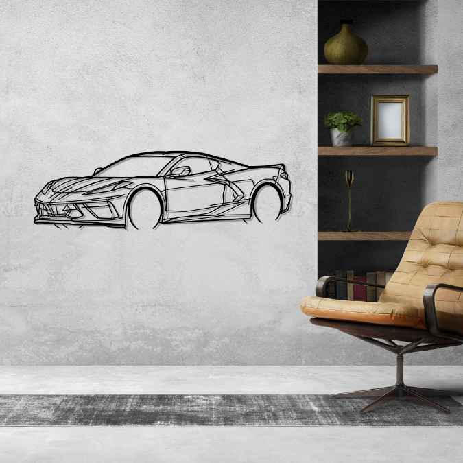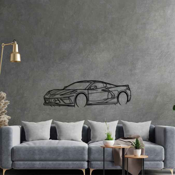Corvette C8 Wandkunst aus Metall mit vorderer Winkel-Silhouette