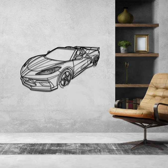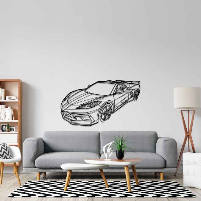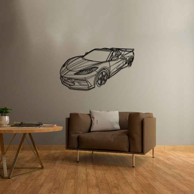 Corvette C8 Stingray Winkel-Silhouette-Wandkunst aus Metall