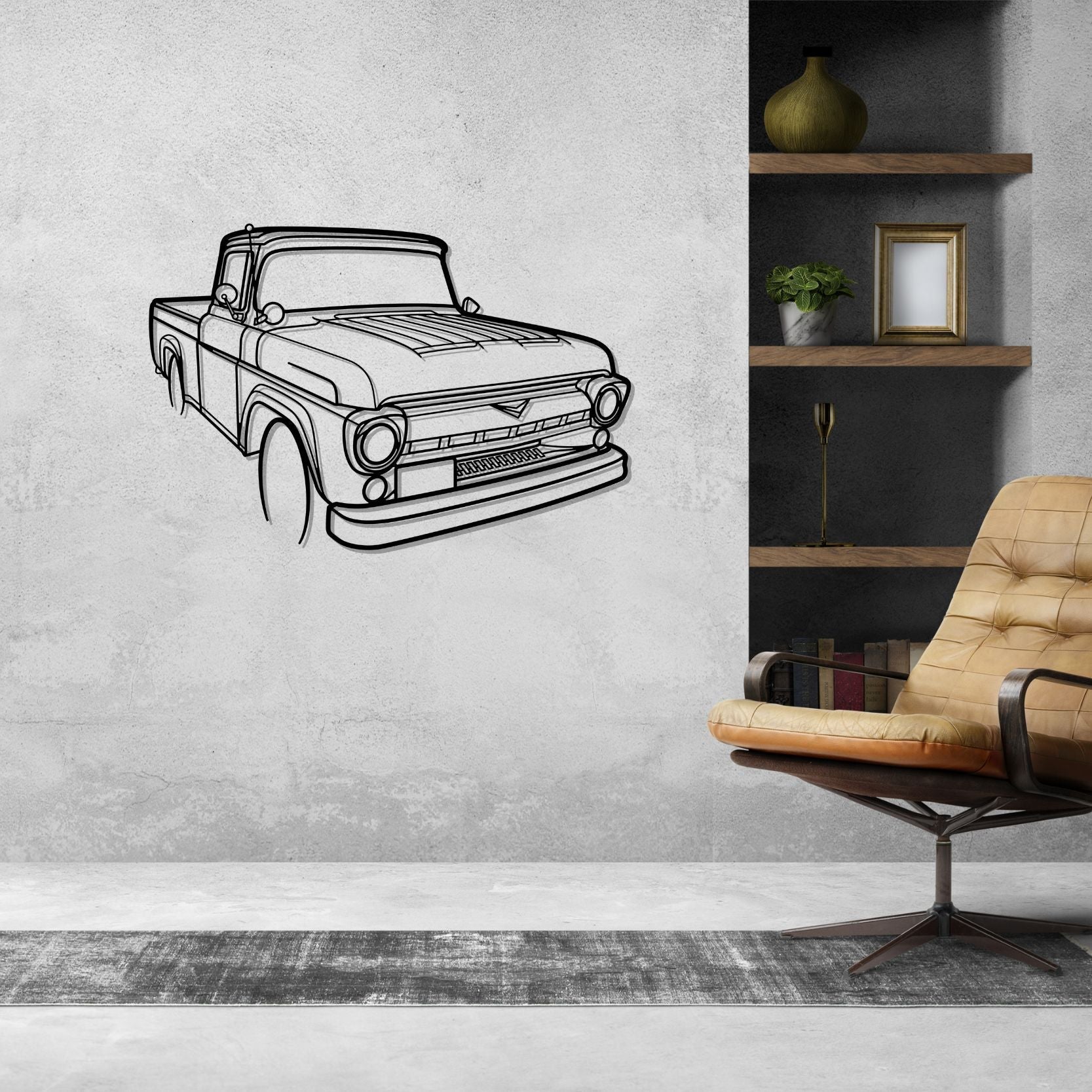 F100 1955 Winkel-Silhouette-Wandkunst aus Metall