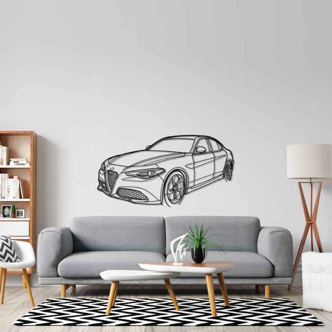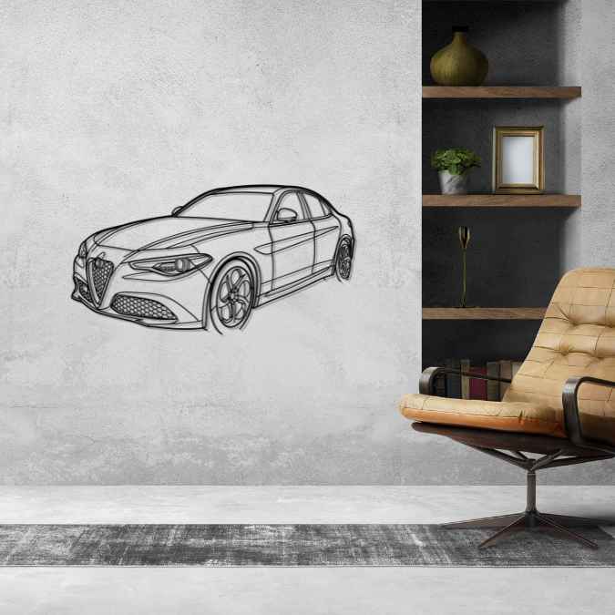Diese Giulia 2017 Winkel-Silhouette-Wandkunst aus Metall verleiht Ihrem Büro, Zimmer oder Ihrer Garage einen einzigartigen Look, der die Aufmerksamkeit aller Rennsport- und Autoliebhaber auf sich zieht und Ihrem Wohndesign eine subtile Note verleiht.