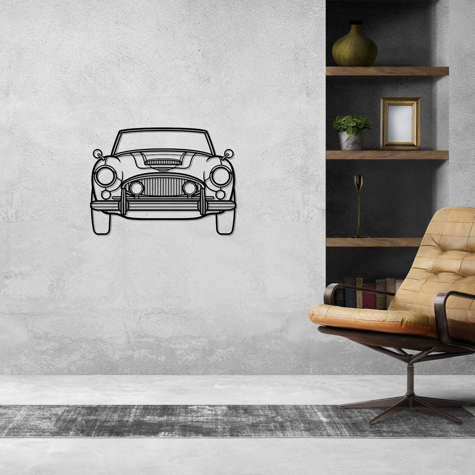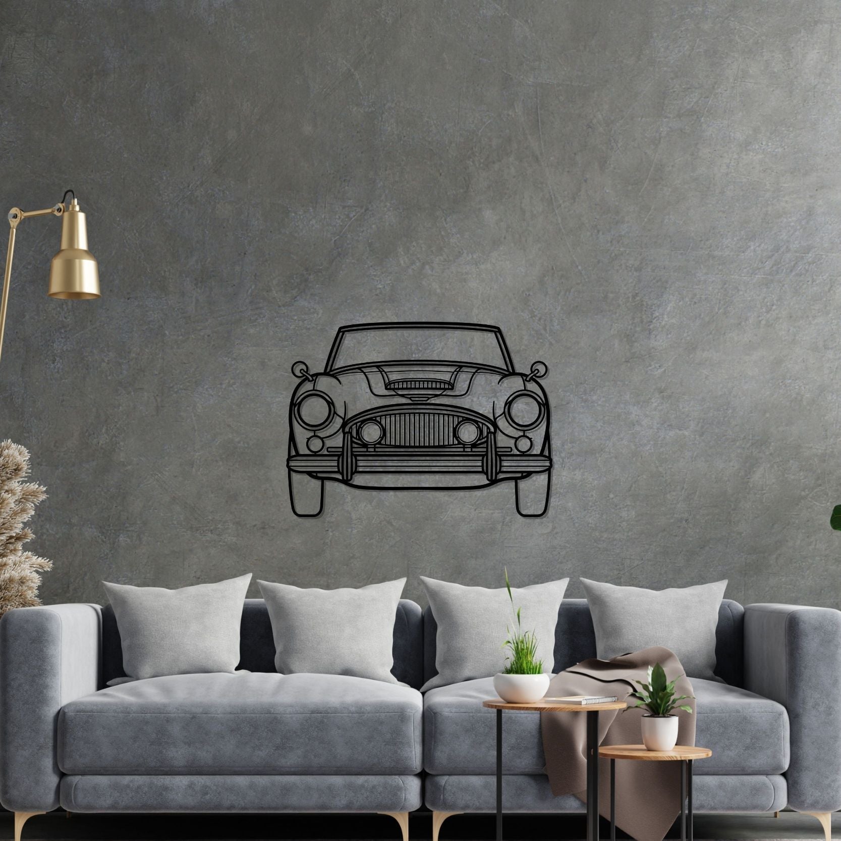 Healey 3000 MkIII 1965 Front Silhouette-Wandkunst aus Metall