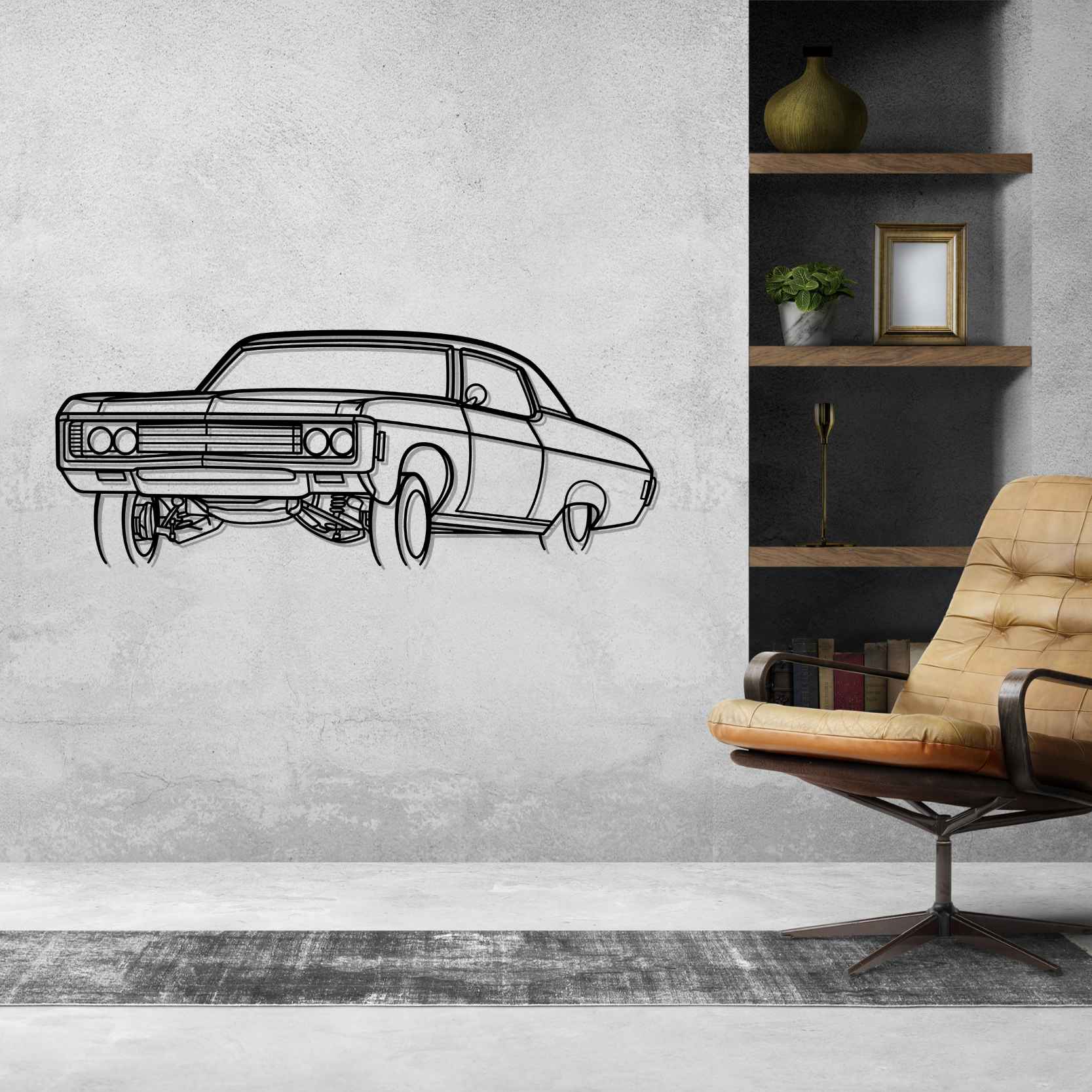 Impala 1969 Winkel-Silhouette-Wandkunst aus Metall