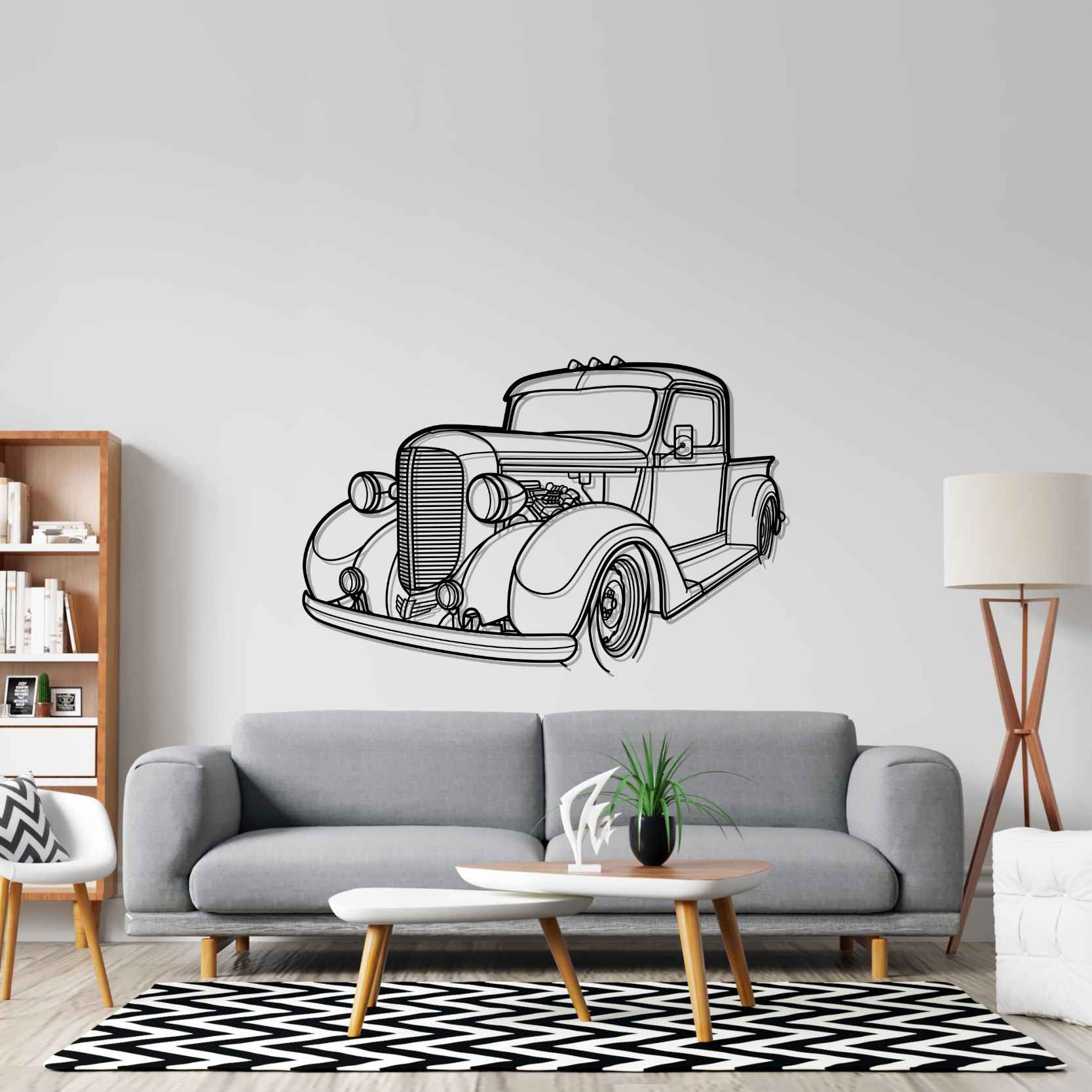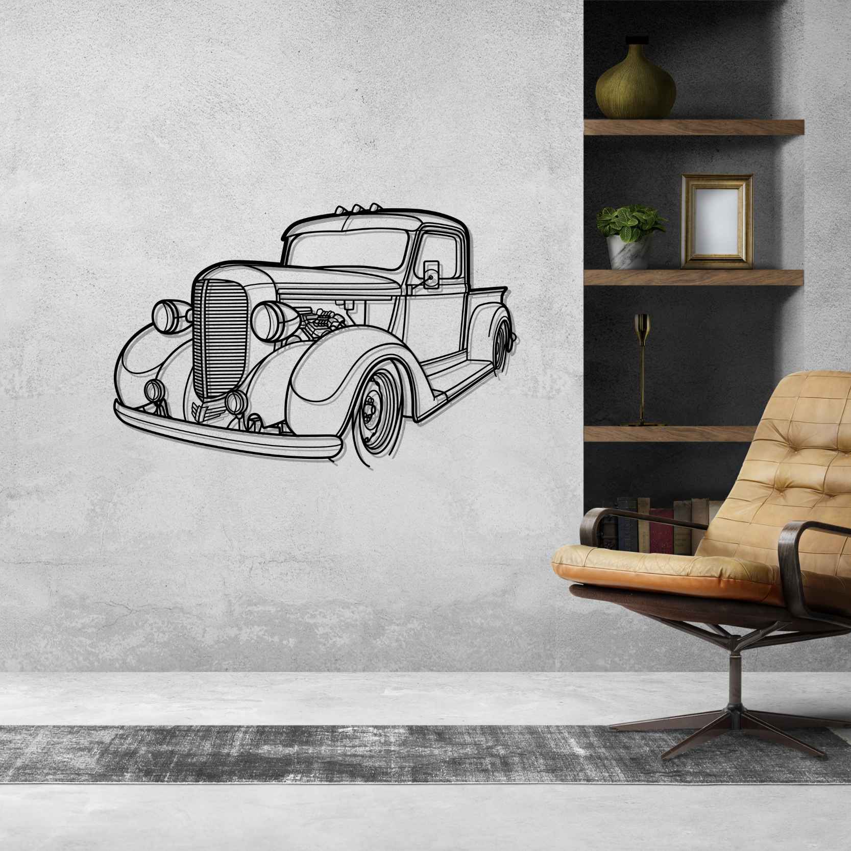 Pickup 1938 Winkel-Silhouette-Wandkunst aus Metall
