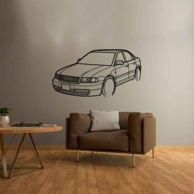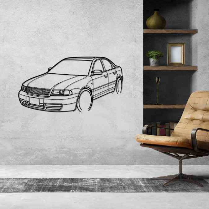 Diese S4 Sedan 2001 Winkel-Silhouette-Wandkunst aus Metall verleiht Ihrem Büro, Zimmer oder Ihrer Garage einen einzigartigen Look, der die Aufmerksamkeit aller Rennsport- und Autoliebhaber auf sich zieht und Ihrem Wohndesign eine subtile Note verleiht.