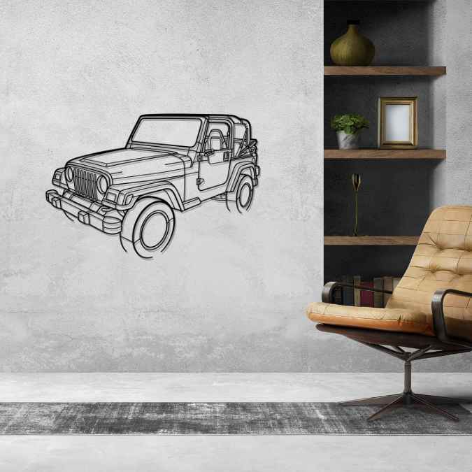 Wrangler 1998 Winkel-Silhouette-Wandkunst aus Metall