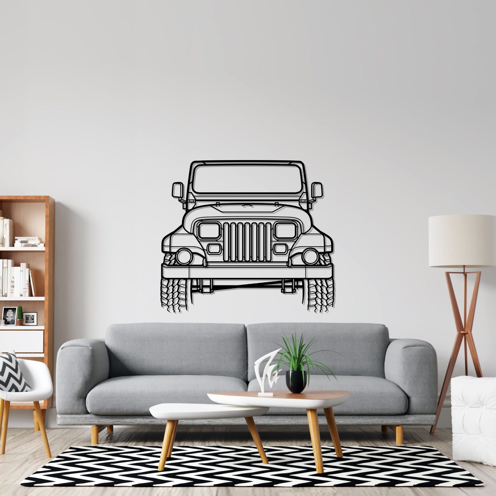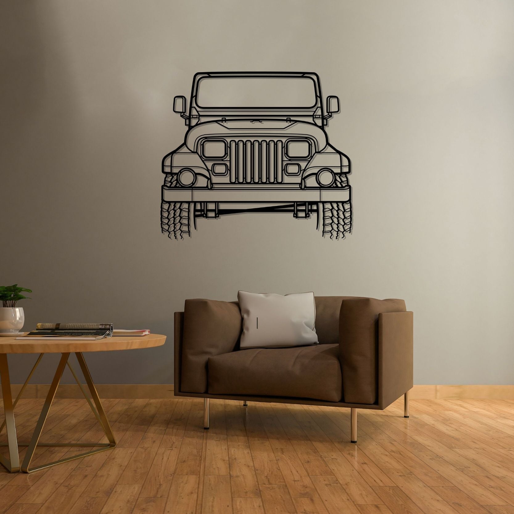 Wrangler Sahara 1988 Front Silhouette-Wandkunst aus Metall