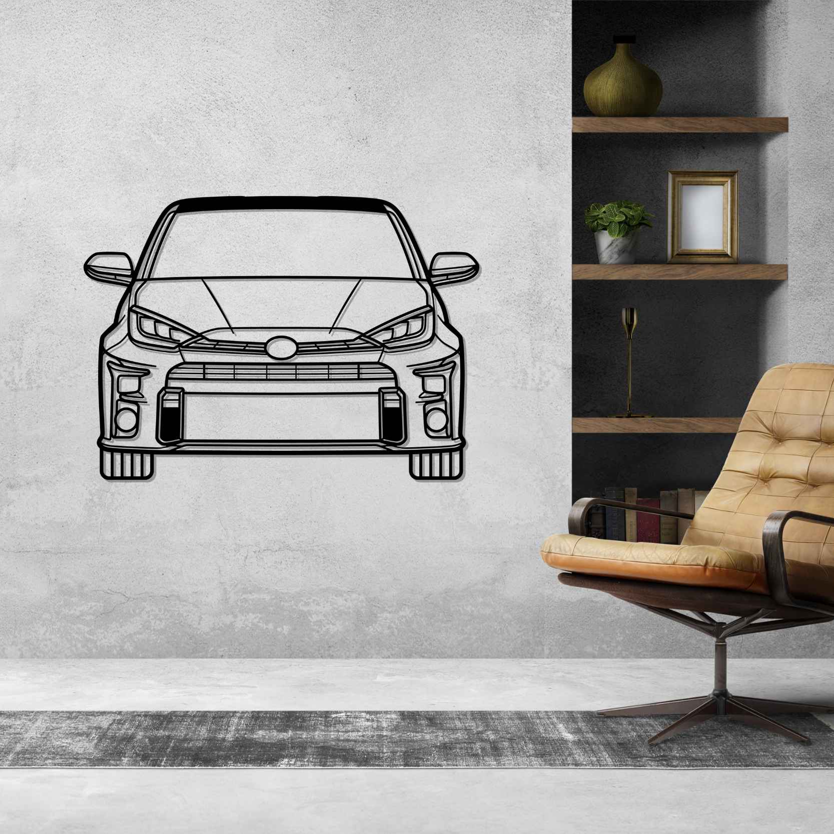 Yaris GR Front 2021 Silhouette-Wandkunst aus Metall