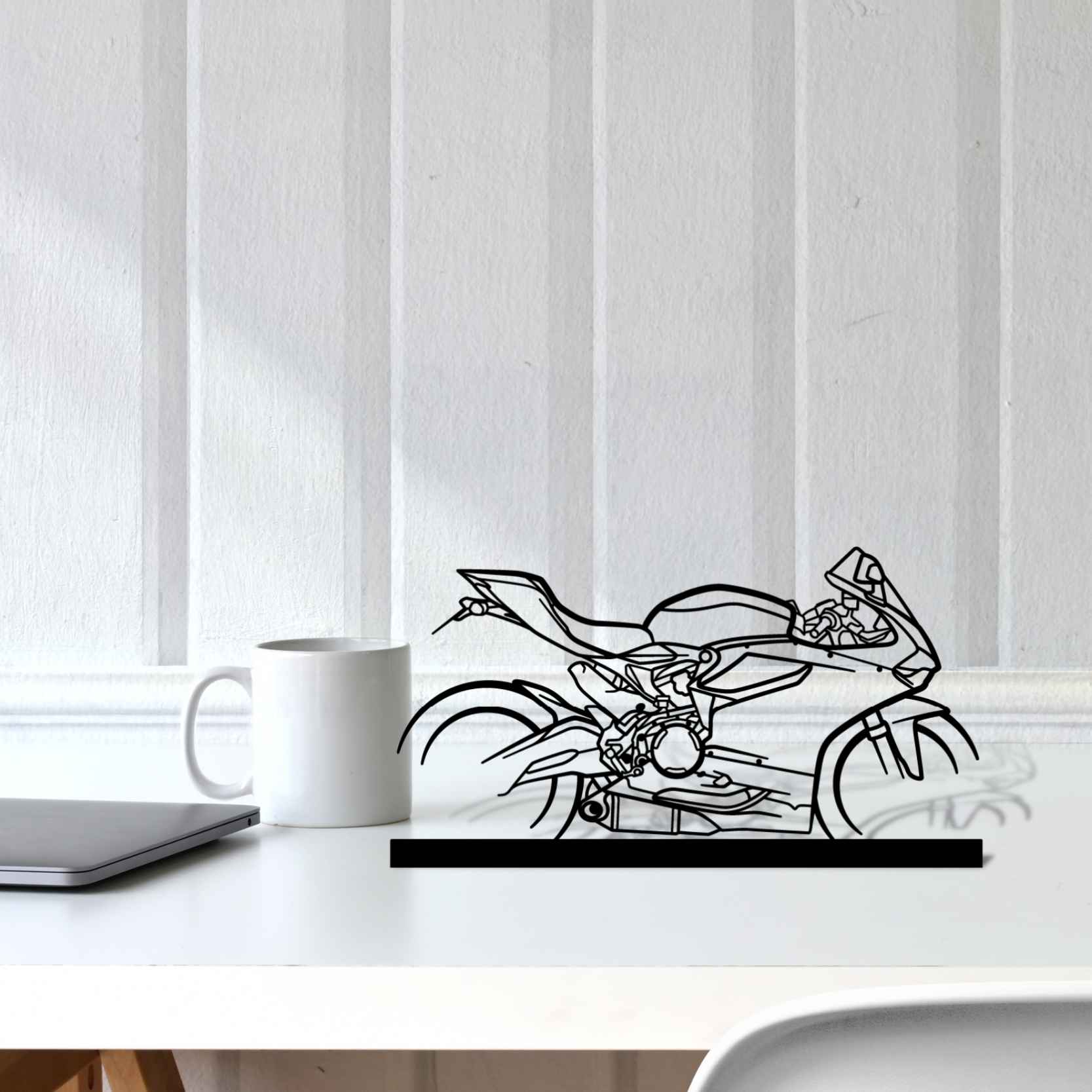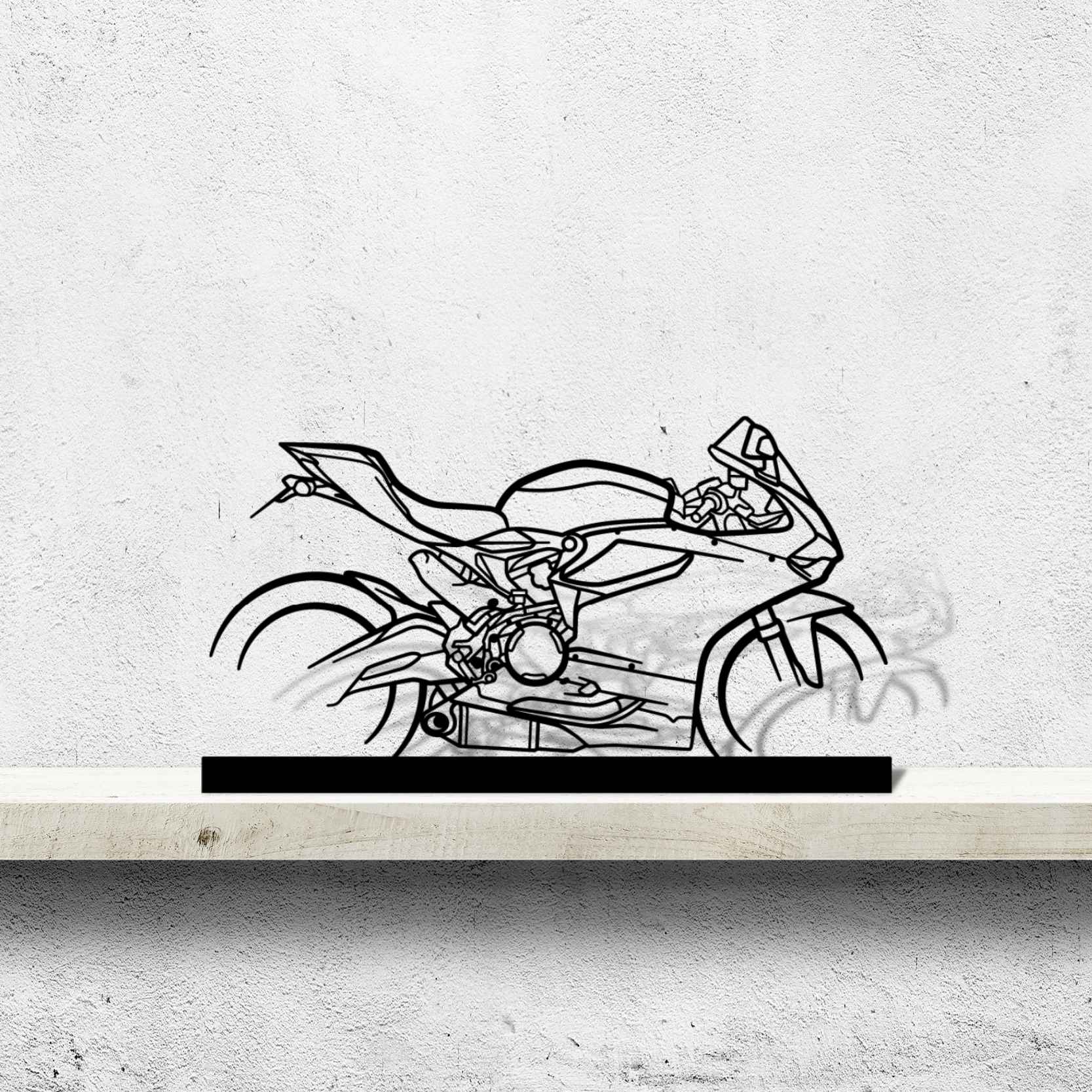 Diese 899 Panigale Silhouette-Kunstständer aus Metall verleiht Ihrem Schreibtisch, Wohnzimmer oder Ihrer Garagenablage einen einzigartigen Look, der die Aufmerksamkeit aller Rennsport- und Autoliebhaber auf sich zieht und Ihrem Wohndesign eine subtile Note verleiht.