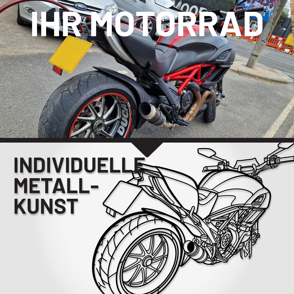 Möchten Sie Ihr Lieblingsmotorrad zur Dekoration Ihres Zimmers oder als beeindruckendes Geschenk für einen Autoliebhaber versenden? Schicken Sie uns Ihr Automodell, das Baujahr und, falls vorhanden, ein Foto, und wir fertigen eine individuelle Silhouette an, bemalen sie und versenden sie an Sie!