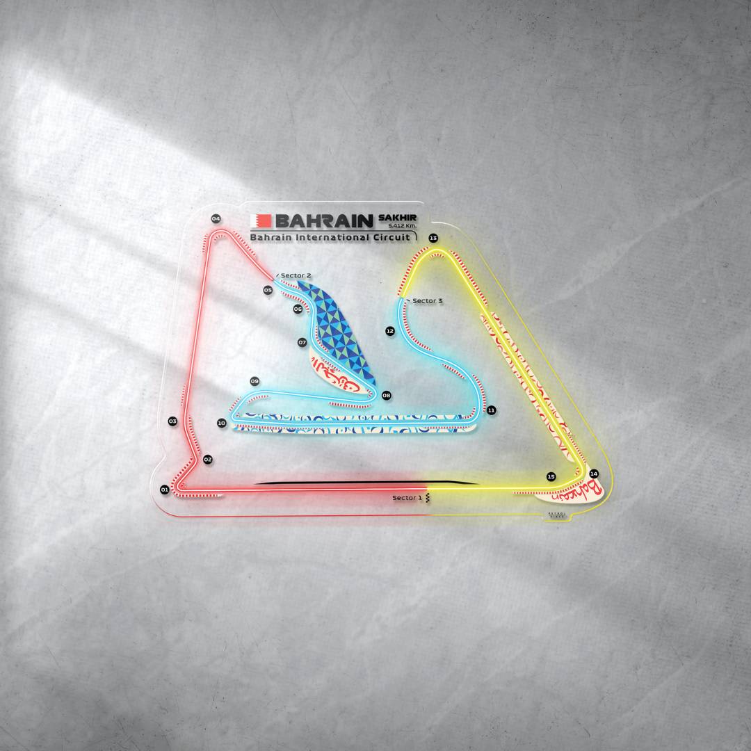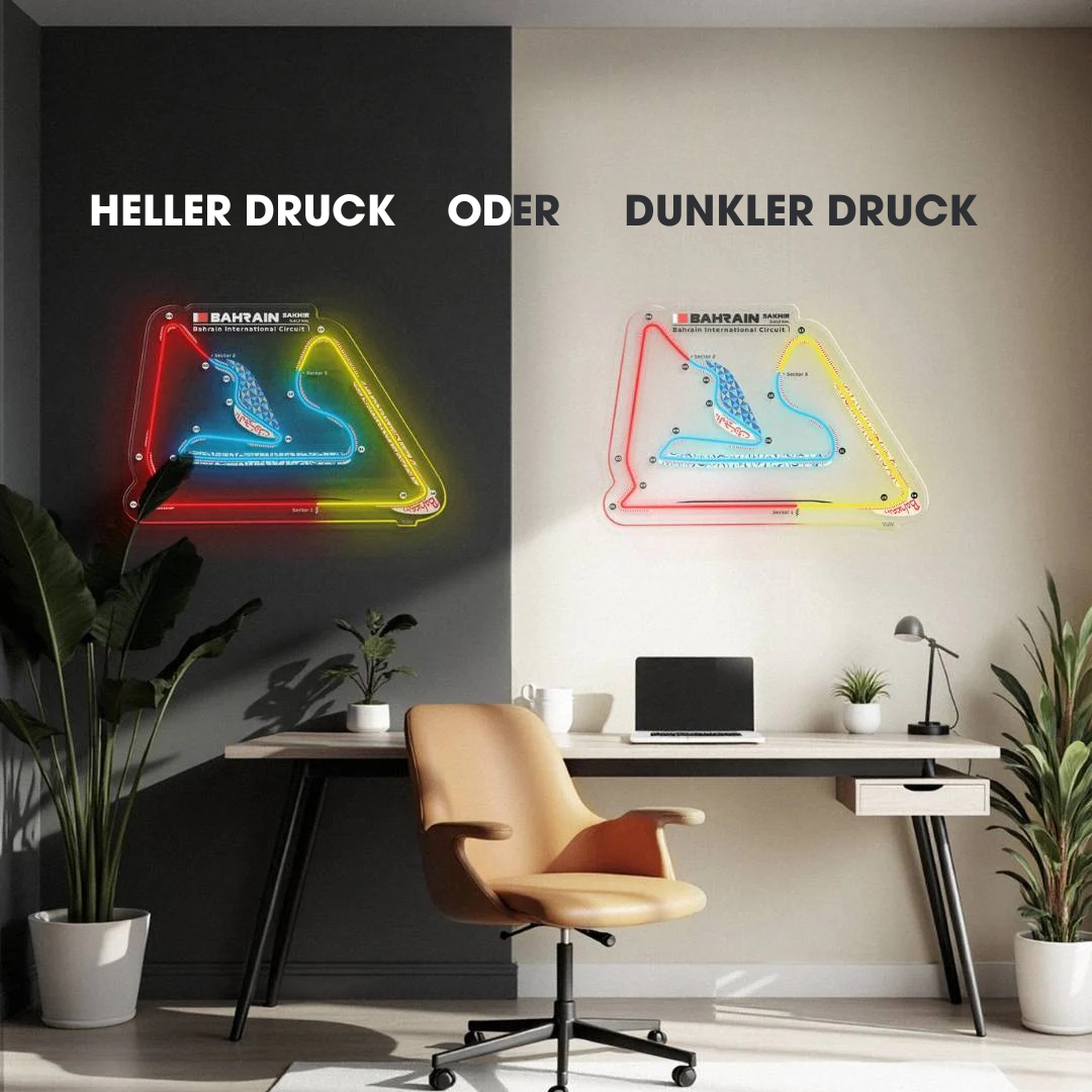 Dieses Bahrain International Circuit Neon-Rennstrecke bringt jeden Raum zum Leuchten. Jede Rennstrecke ist in drei typischen Farben der Formel 1 gehalten und zeigt den Namen der Rennstrecke sowie die Länge und das Land, in dem sie sich befindet. Es ist eine perfekte Möglichkeit, etwas Farbe ins Spiel zu bringen, das Gesamtbild aufzuwerten und die Aufmerksamkeit aller auf sich zu ziehen, egal, ob Rennsportfan oder nicht.