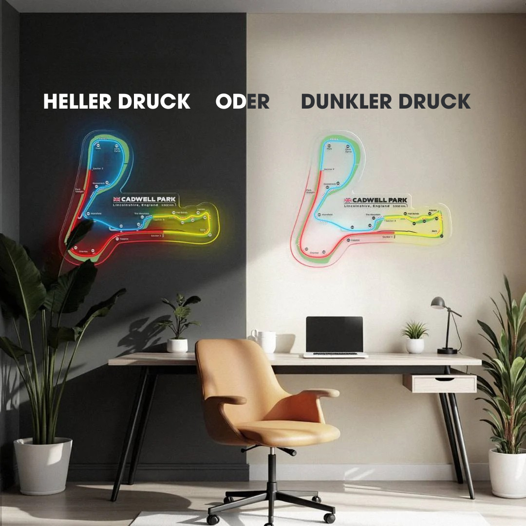 Dieses Cadwell Park Neon-Rennstrecke bringt jeden Raum zum Leuchten. Jede Rennstrecke ist in drei typischen Farben der Formel 1 gehalten und zeigt den Namen der Rennstrecke sowie die Länge und das Land, in dem sie sich befindet. Es ist eine perfekte Möglichkeit, etwas Farbe ins Spiel zu bringen, das Gesamtbild aufzuwerten und die Aufmerksamkeit aller auf sich zu ziehen, egal, ob Rennsportfan oder nicht.
