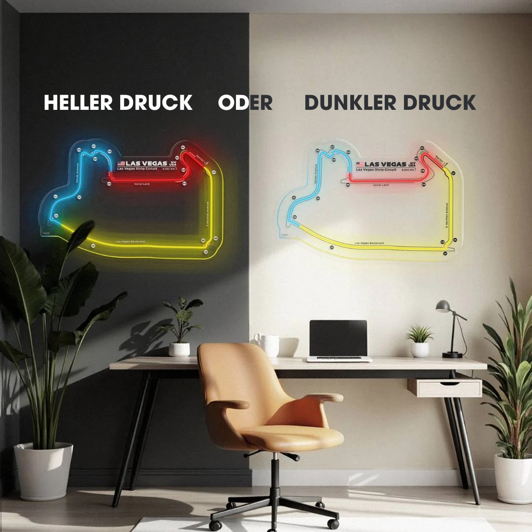 Dieses Las Vegas Strip Circuit Neon-Rennstrecke bringt jeden Raum zum Leuchten. Jede Rennstrecke ist in drei typischen Farben der Formel 1 gehalten und zeigt den Namen der Rennstrecke sowie die Länge und das Land, in dem sie sich befindet. Es ist eine perfekte Möglichkeit, etwas Farbe ins Spiel zu bringen, das Gesamtbild aufzuwerten und die Aufmerksamkeit aller auf sich zu ziehen, egal, ob Rennsportfan oder nicht.