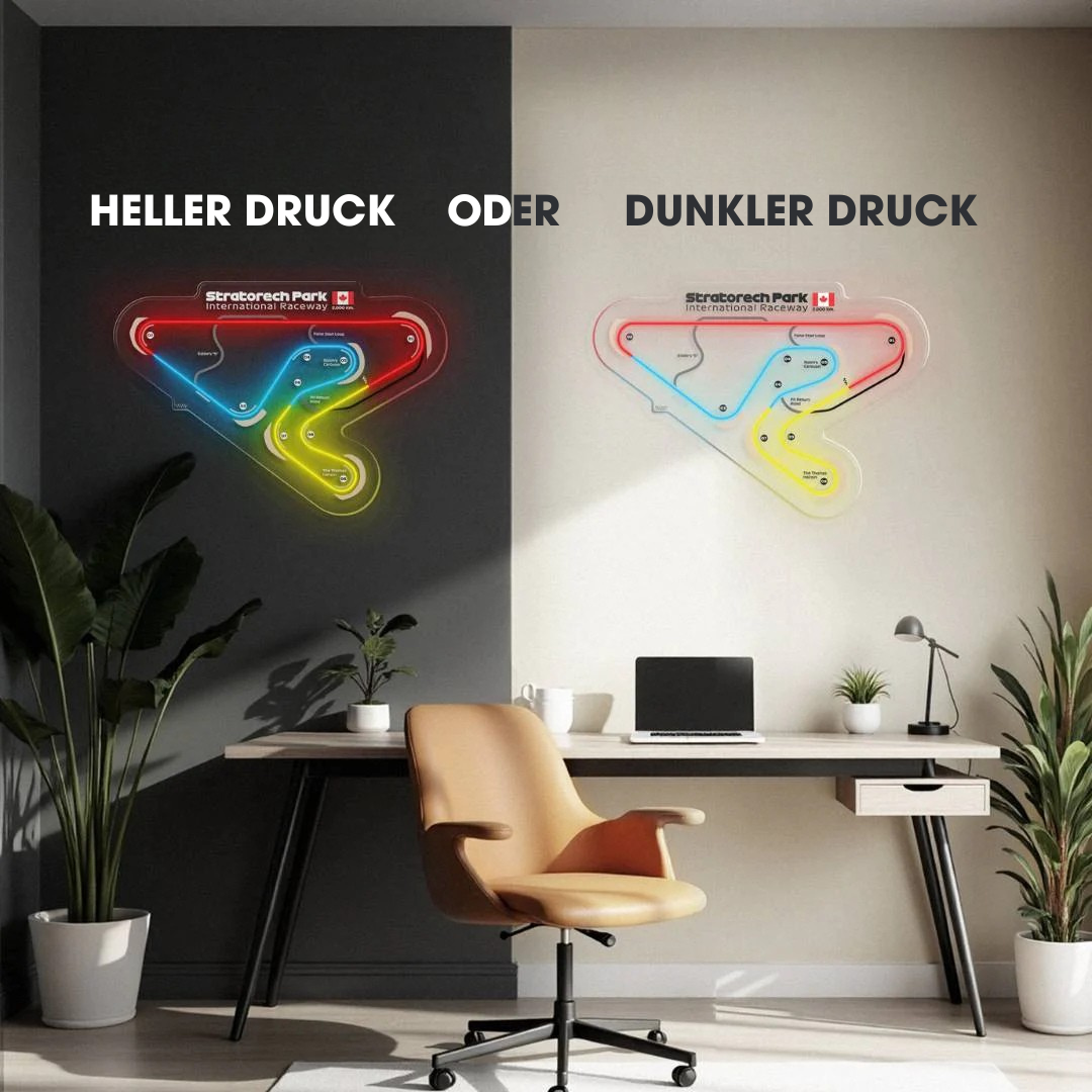 Dieses Stratotech Park Raceway Neon-Rennstrecke bringt jeden Raum zum Leuchten. Jede Rennstrecke ist in drei typischen Farben der Formel 1 gehalten und zeigt den Namen der Rennstrecke sowie die Länge und das Land, in dem sie sich befindet. Es ist eine perfekte Möglichkeit, etwas Farbe ins Spiel zu bringen, das Gesamtbild aufzuwerten und die Aufmerksamkeit aller auf sich zu ziehen, egal, ob Rennsportfan oder nicht.
