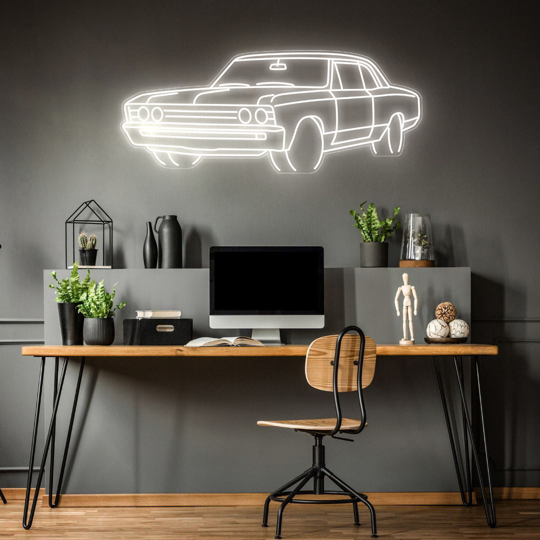 Diese auffällige Chevelle 1967 Angle Neon-Silhouette Ihrem Zimmer, Büro oder Ihrer Garage einen wunderschönen Lichtakzent und moderne Eleganz und wird die Aufmerksamkeit jedes Rennsport- oder Autoliebhabers auf sich ziehen.