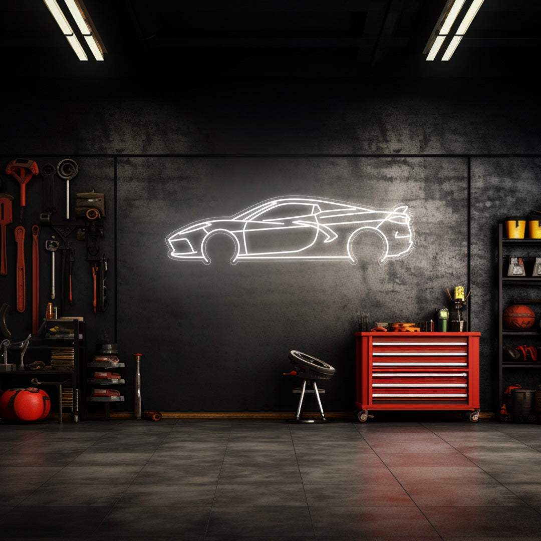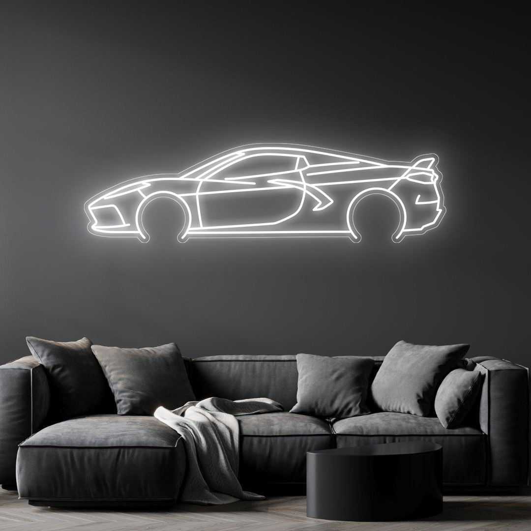 Diese auffällige Corvette C8 HTC Neon-Silhouette Ihrem Zimmer, Büro oder Ihrer Garage einen wunderschönen Lichtakzent und moderne Eleganz und wird die Aufmerksamkeit jedes Rennsport- oder Autoliebhabers auf sich ziehen.