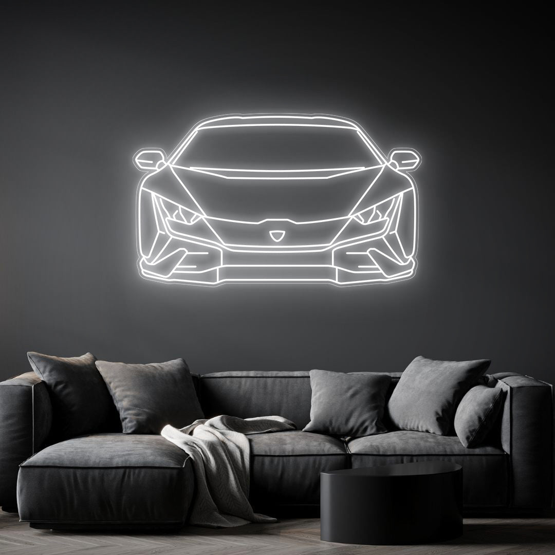 Diese auffällige Huracan Tecnica Front Neon-Silhouette Ihrem Zimmer, Büro oder Ihrer Garage einen wunderschönen Lichtakzent und moderne Eleganz und wird die Aufmerksamkeit jedes Rennsport- oder Autoliebhabers auf sich ziehen.