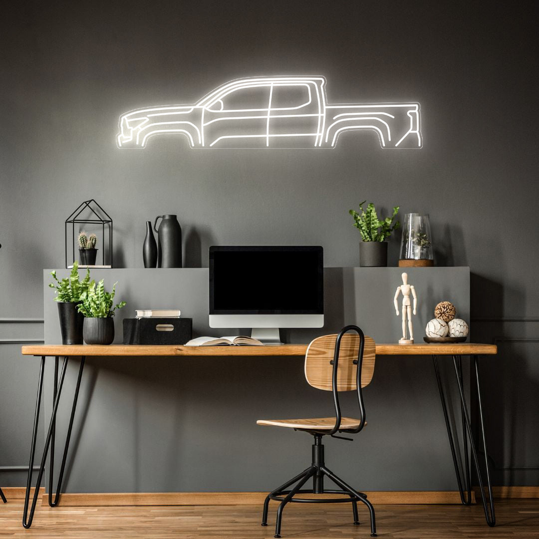 Diese auffällige Tacoma TRD 2024 Neon-Silhouette Ihrem Zimmer, Büro oder Ihrer Garage einen wunderschönen Lichtakzent und moderne Eleganz und wird die Aufmerksamkeit jedes Rennsport- oder Autoliebhabers auf sich ziehen.