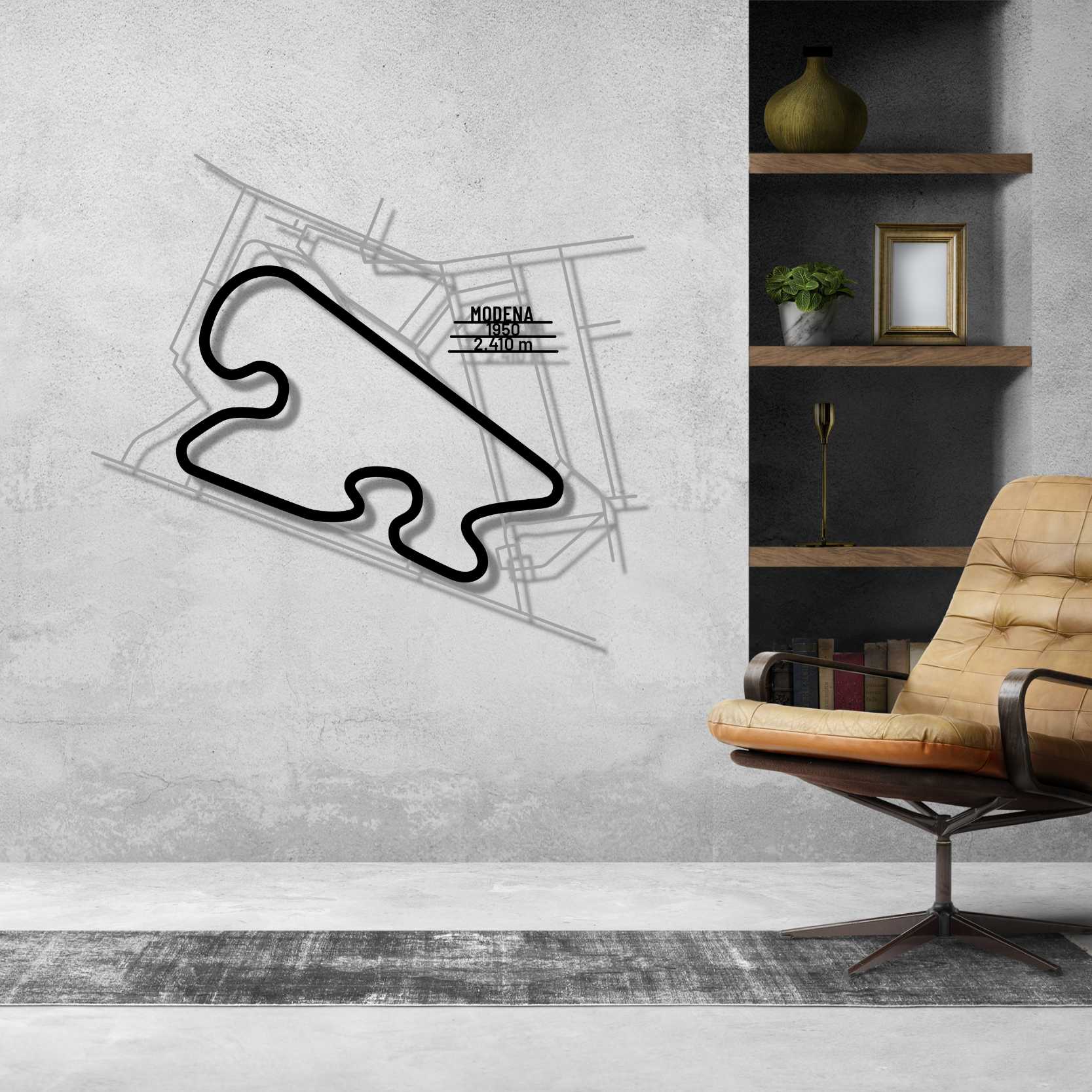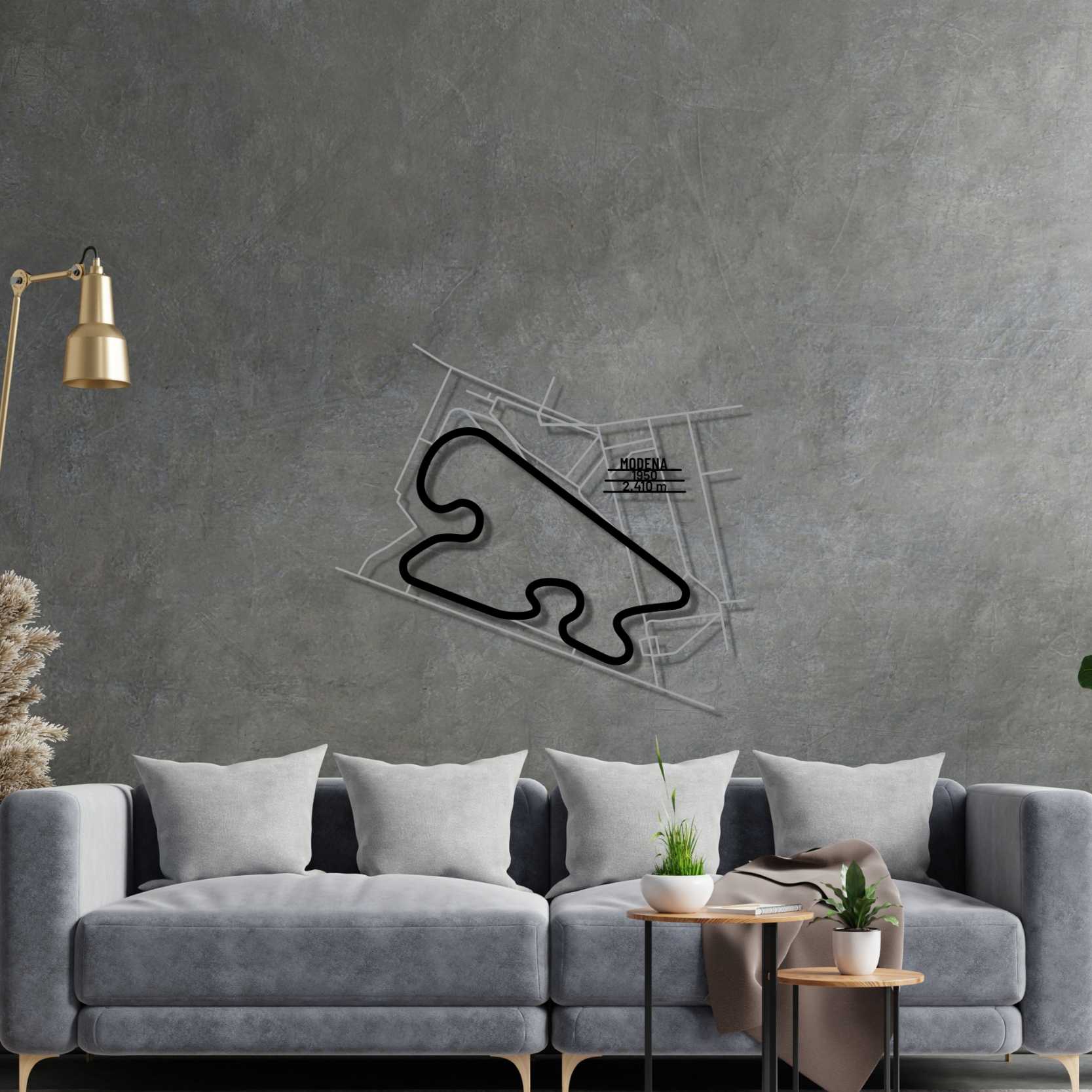 Dieses Modena Wandkunst aus Metall, ist unser erstes mehrschichtiges und mehrfarbiges 3-teiliges Wandkunstwerk. Es umfasst die Schiene in unserem klassischen schwarzen Finish und den umgebenden Bereich in einem glänzenden und funkelnden Grauton. Als Krönung bringen wir eine Metallplatte mit dem Namen der Strecke, ihrer Länge und dem Datum ihrer Fertigstellung an. Dieses Meisterwerk allein oder in Kombination mit einem unserer anderen Produkte verleiht Ihrem Büro, Zimmer oder Ihrer Garage einen einzigartigen Look, der die Aufmerksamkeit jedes Rennsport- oder Autoliebhabers auf sich zieht und Ihrer Inneneinrichtung einen subtilen Hauch von Motorsport-Flair verleiht.