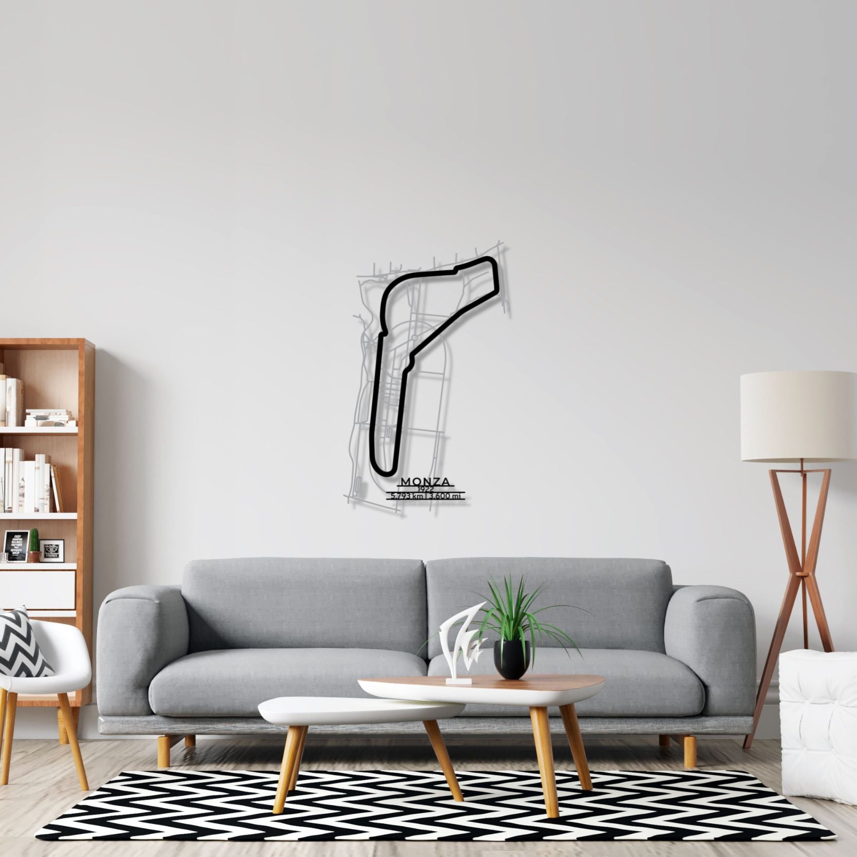 Dieses Monza Circuit Wandkunst aus Metall, ist unser erstes mehrschichtiges und mehrfarbiges 3-teiliges Wandkunstwerk. Es umfasst die Schiene in unserem klassischen schwarzen Finish und den umgebenden Bereich in einem glänzenden und funkelnden Grauton. Als Krönung bringen wir eine Metallplatte mit dem Namen der Strecke, ihrer Länge und dem Datum ihrer Fertigstellung an. Dieses Meisterwerk allein oder in Kombination mit einem unserer anderen Produkte verleiht Ihrem Büro, Zimmer oder Ihrer Garage einen einzigartigen Look, der die Aufmerksamkeit jedes Rennsport- oder Autoliebhabers auf sich zieht und Ihrer Inneneinrichtung einen subtilen Hauch von Motorsport-Flair verleiht.