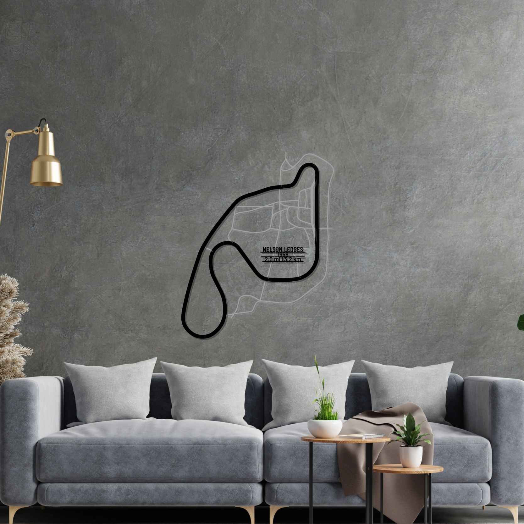 Dieses Nelson Ledges Wandkunst aus Metall, ist unser erstes mehrschichtiges und mehrfarbiges 3-teiliges Wandkunstwerk. Es umfasst die Schiene in unserem klassischen schwarzen Finish und den umgebenden Bereich in einem glänzenden und funkelnden Grauton. Als Krönung bringen wir eine Metallplatte mit dem Namen der Strecke, ihrer Länge und dem Datum ihrer Fertigstellung an. Dieses Meisterwerk allein oder in Kombination mit einem unserer anderen Produkte verleiht Ihrem Büro, Zimmer oder Ihrer Garage einen einzigartigen Look, der die Aufmerksamkeit jedes Rennsport- oder Autoliebhabers auf sich zieht und Ihrer Inneneinrichtung einen subtilen Hauch von Motorsport-Flair verleiht.