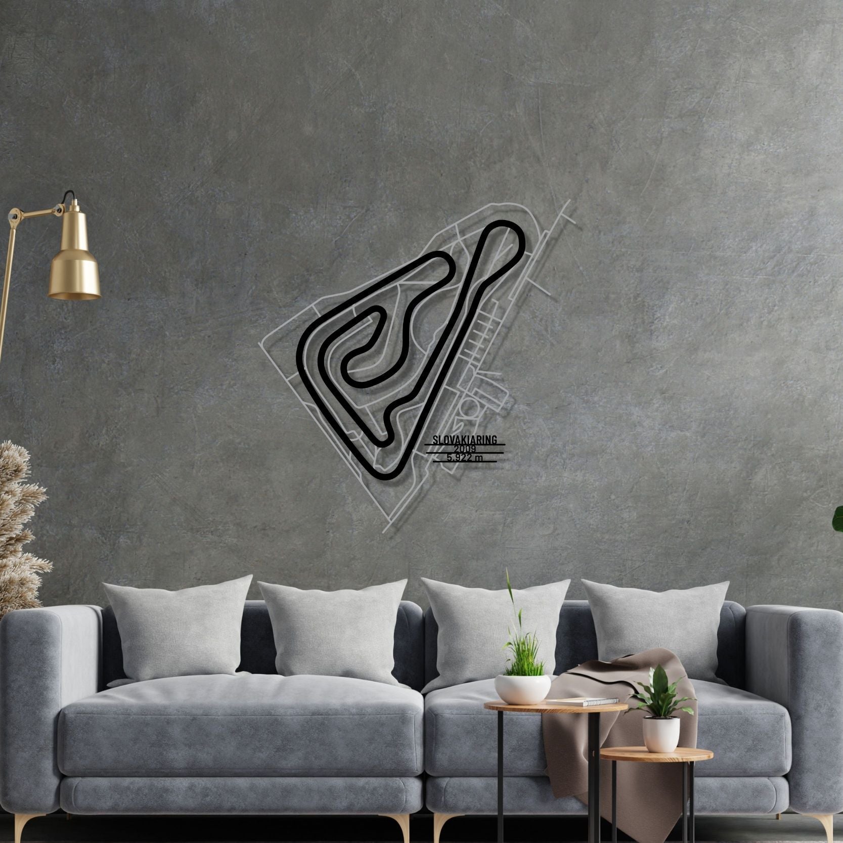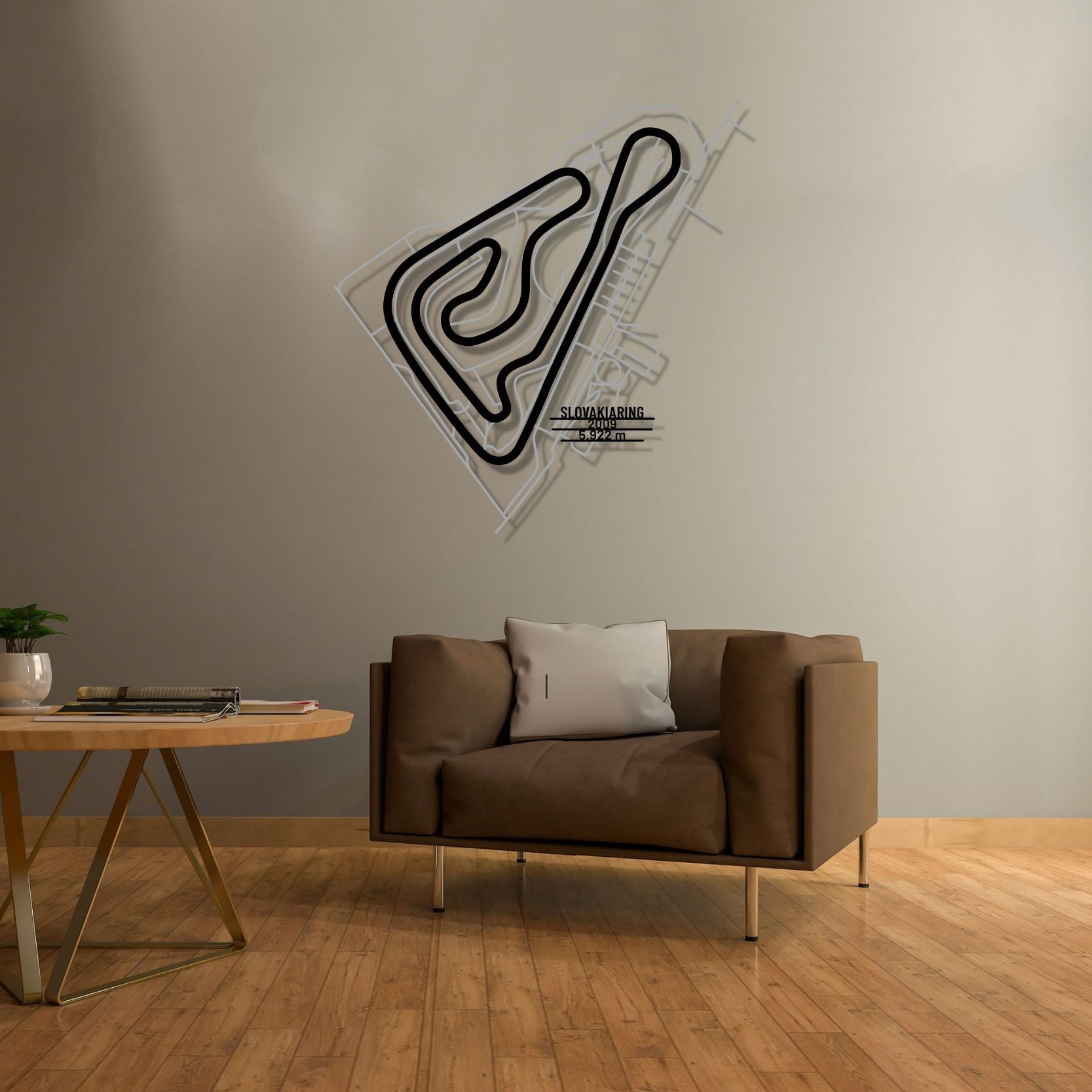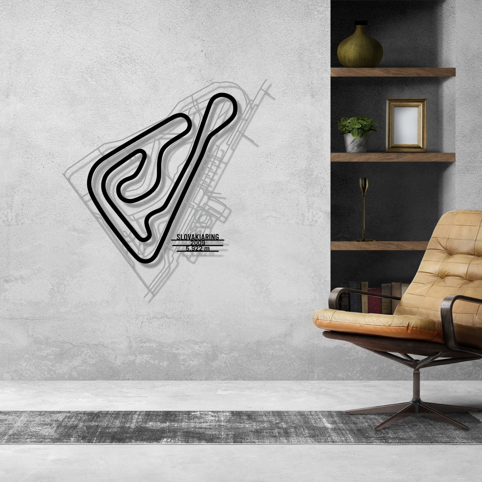 Dieses Slovakia Ring Wandkunst aus Metall, ist unser erstes mehrschichtiges und mehrfarbiges 3-teiliges Wandkunstwerk. Es umfasst die Schiene in unserem klassischen schwarzen Finish und den umgebenden Bereich in einem glänzenden und funkelnden Grauton. Als Krönung bringen wir eine Metallplatte mit dem Namen der Strecke, ihrer Länge und dem Datum ihrer Fertigstellung an. Dieses Meisterwerk allein oder in Kombination mit einem unserer anderen Produkte verleiht Ihrem Büro, Zimmer oder Ihrer Garage einen einzigartigen Look, der die Aufmerksamkeit jedes Rennsport- oder Autoliebhabers auf sich zieht und Ihrer Inneneinrichtung einen subtilen Hauch von Motorsport-Flair verleiht.