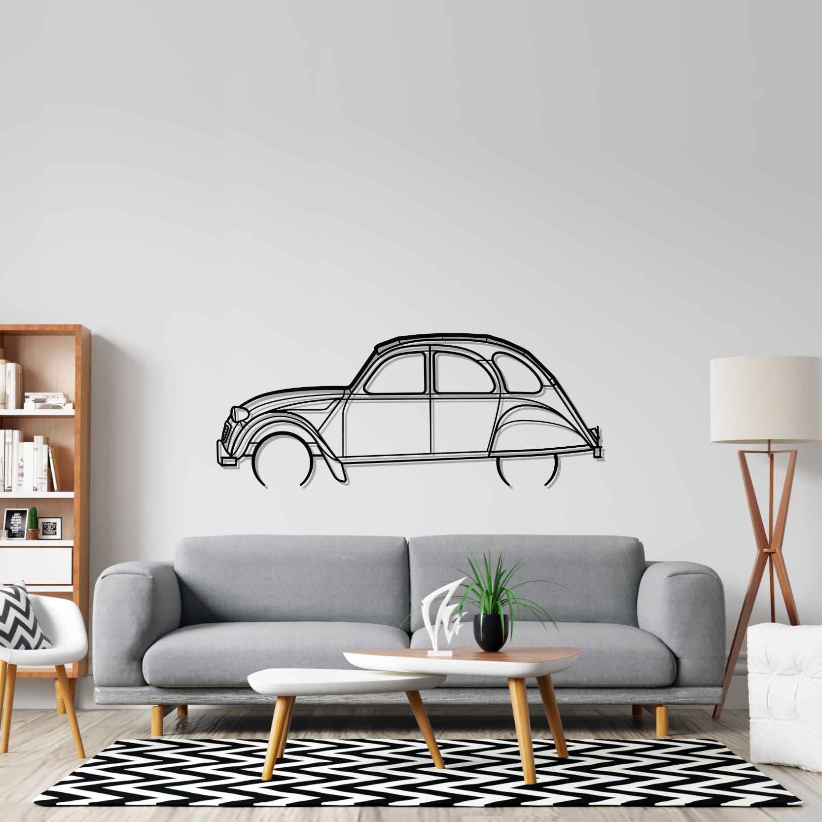 2CV 1966 Detaillierte Silhouette-Wandkunst aus Metall