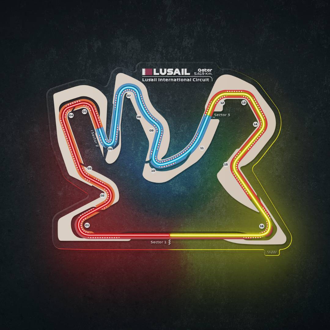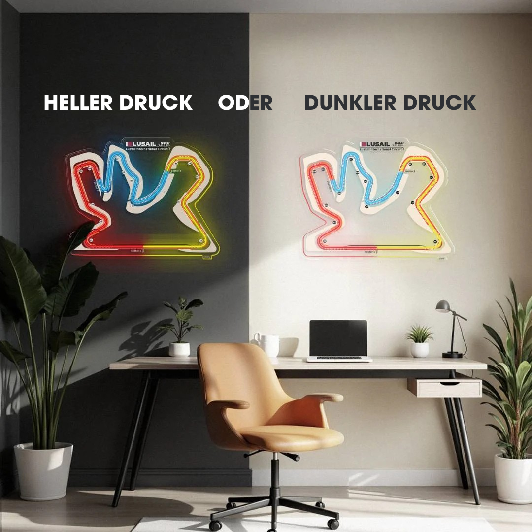 Dieses Lusail International Circuit Neon-Rennstrecke bringt jeden Raum zum Leuchten. Jede Rennstrecke ist in drei typischen Farben der Formel 1 gehalten und zeigt den Namen der Rennstrecke sowie die Länge und das Land, in dem sie sich befindet. Es ist eine perfekte Möglichkeit, etwas Farbe ins Spiel zu bringen, das Gesamtbild aufzuwerten und die Aufmerksamkeit aller auf sich zu ziehen, egal, ob Rennsportfan oder nicht.