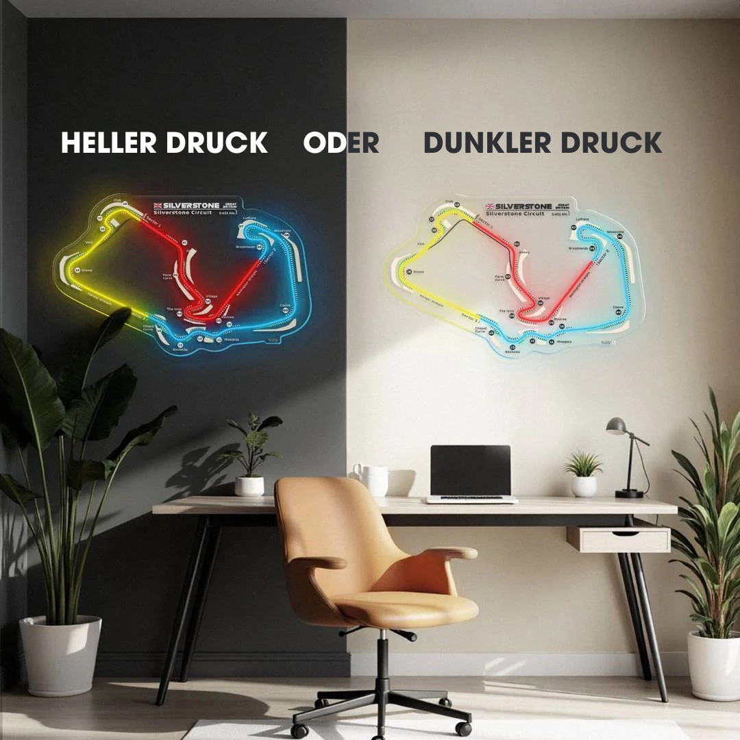 Dieses Silverstone Circuit Neon-Rennstrecke bringt jeden Raum zum Leuchten. Jede Rennstrecke ist in drei typischen Farben der Formel 1 gehalten und zeigt den Namen der Rennstrecke sowie die Länge und das Land, in dem sie sich befindet. Es ist eine perfekte Möglichkeit, etwas Farbe ins Spiel zu bringen, das Gesamtbild aufzuwerten und die Aufmerksamkeit aller auf sich zu ziehen, egal, ob Rennsportfan oder nicht.