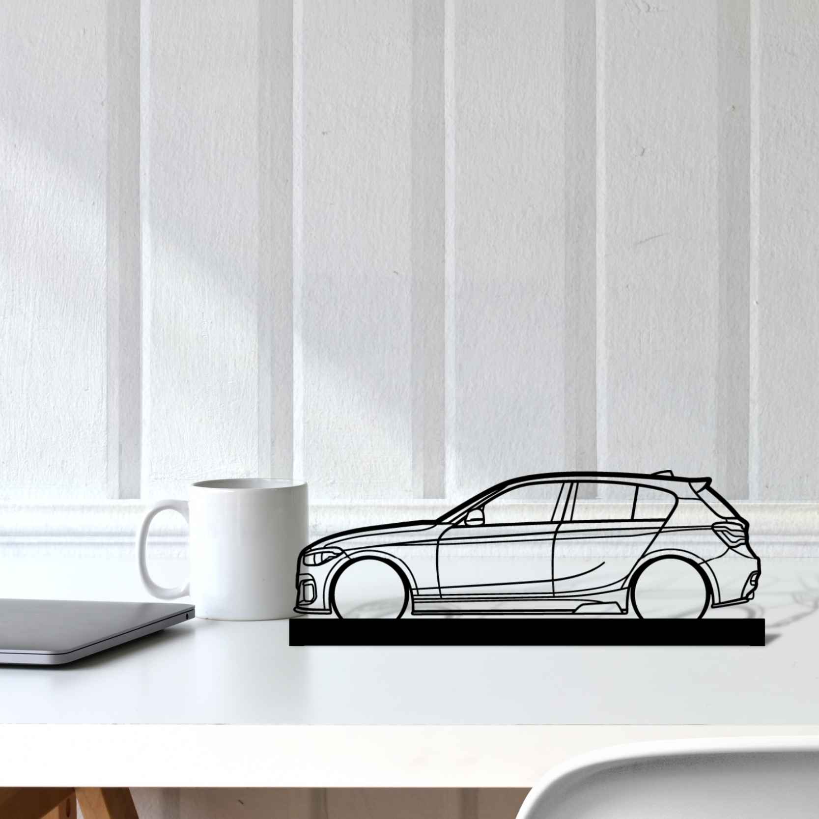 Diese 140i F20 Silhouette-Kunstständer aus Metall verleiht Ihrem Schreibtisch, Wohnzimmer oder Ihrer Garagenablage einen einzigartigen Look, der die Aufmerksamkeit aller Rennsport- und Autoliebhaber auf sich zieht und Ihrem Wohndesign eine subtile Note verleiht.
