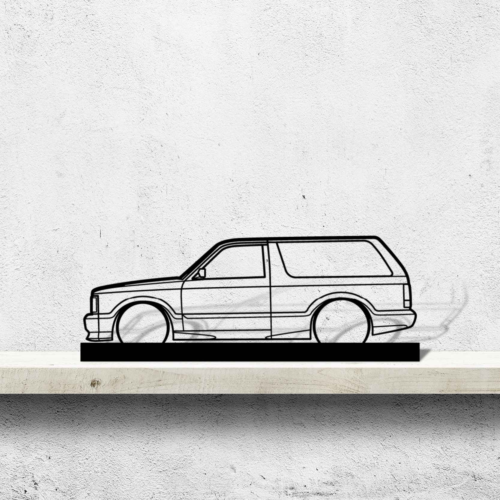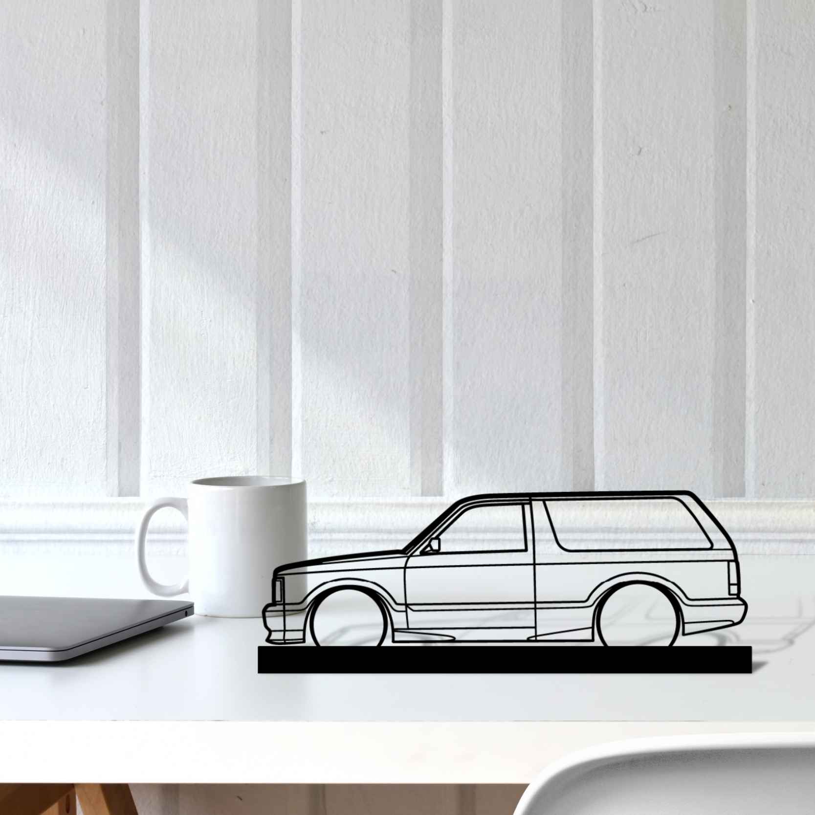 Diese 93 Typhoon Silhouette-Kunstständer aus Metall verleiht Ihrem Schreibtisch, Wohnzimmer oder Ihrer Garagenablage einen einzigartigen Look, der die Aufmerksamkeit aller Rennsport- und Autoliebhaber auf sich zieht und Ihrem Wohndesign eine subtile Note verleiht.