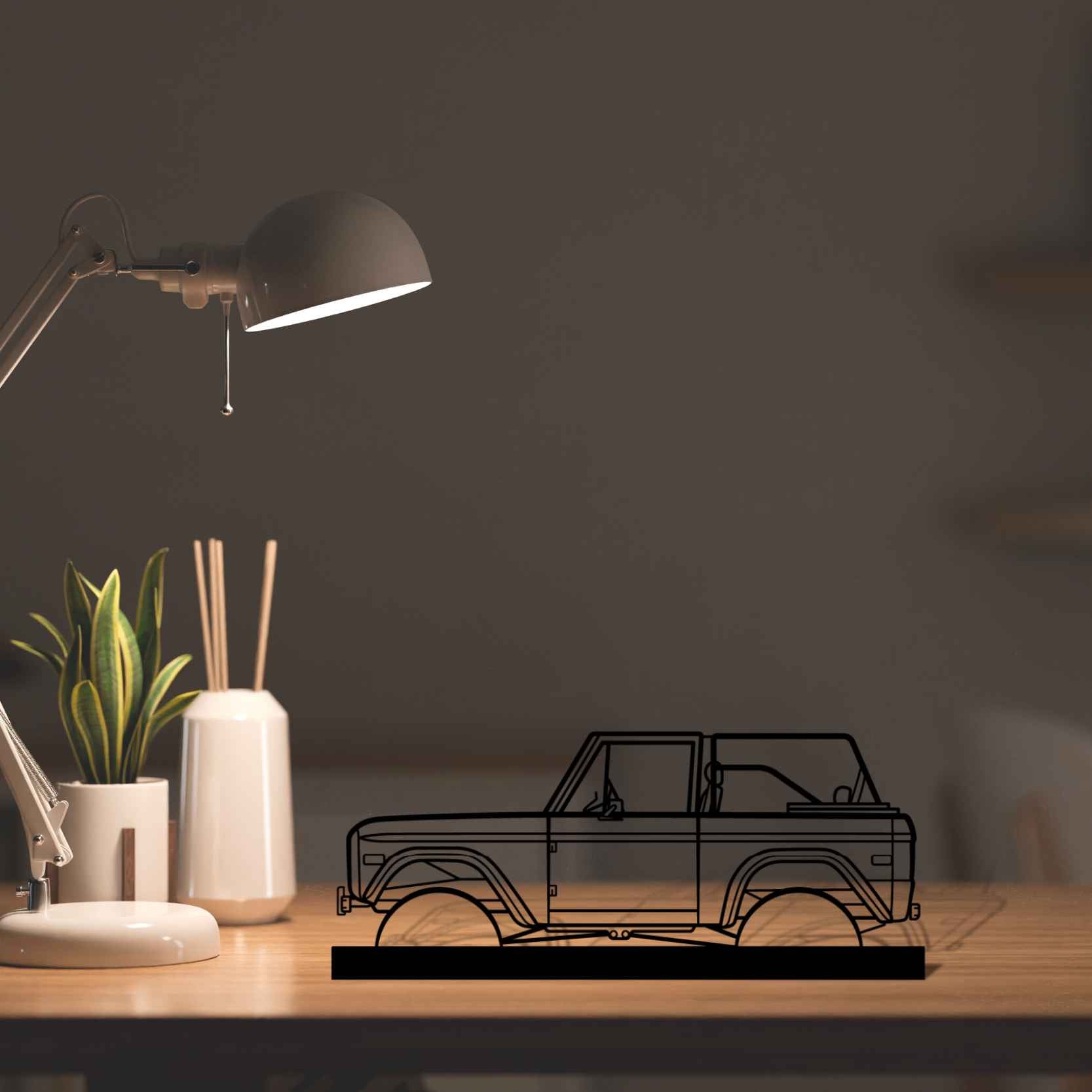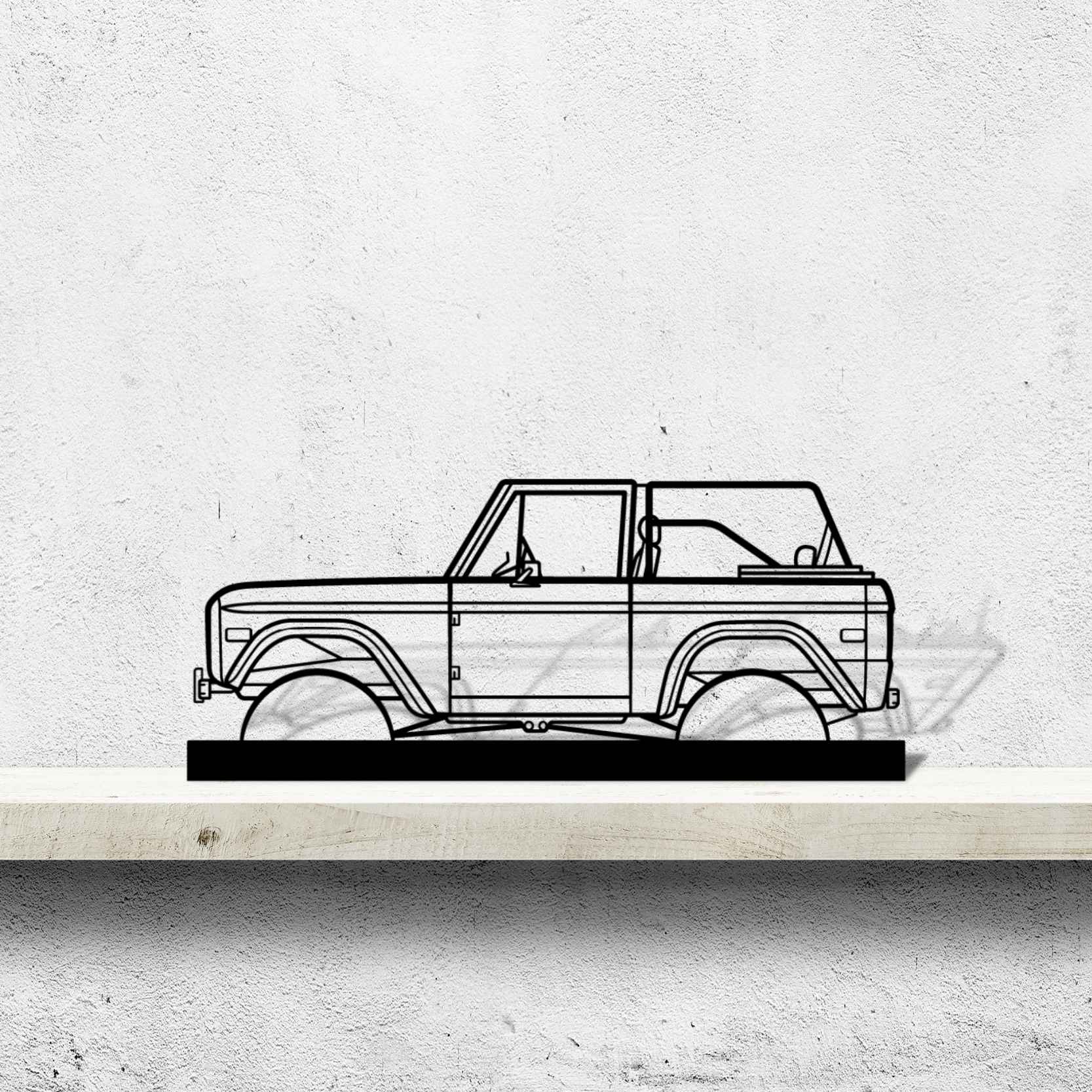 Diese Bronco 1971 Silhouette-Kunstständer aus Metall verleiht Ihrem Schreibtisch, Wohnzimmer oder Ihrer Garagenablage einen einzigartigen Look, der die Aufmerksamkeit aller Rennsport- und Autoliebhaber auf sich zieht und Ihrem Wohndesign eine subtile Note verleiht.