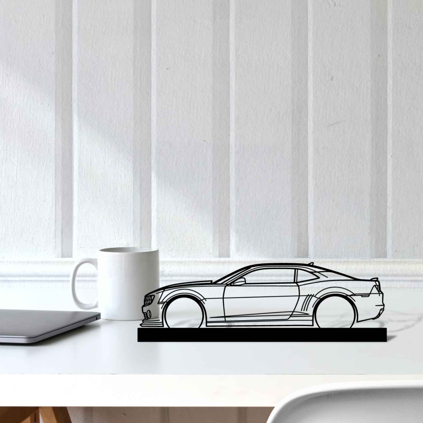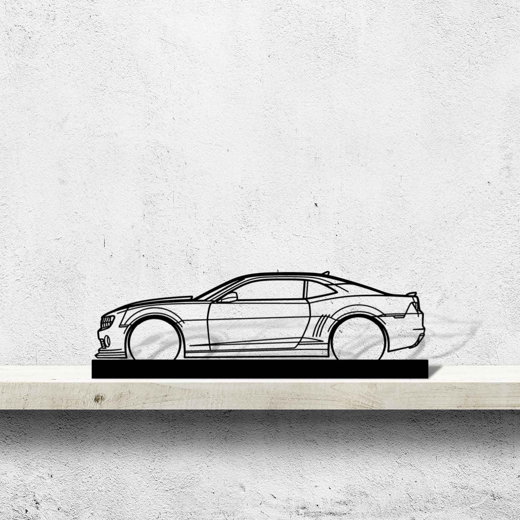 Diese Camaro Silhouette-Kunstständer aus Metall verleiht Ihrem Schreibtisch, Wohnzimmer oder Ihrer Garagenablage einen einzigartigen Look, der die Aufmerksamkeit aller Rennsport- und Autoliebhaber auf sich zieht und Ihrem Wohndesign eine subtile Note verleiht.