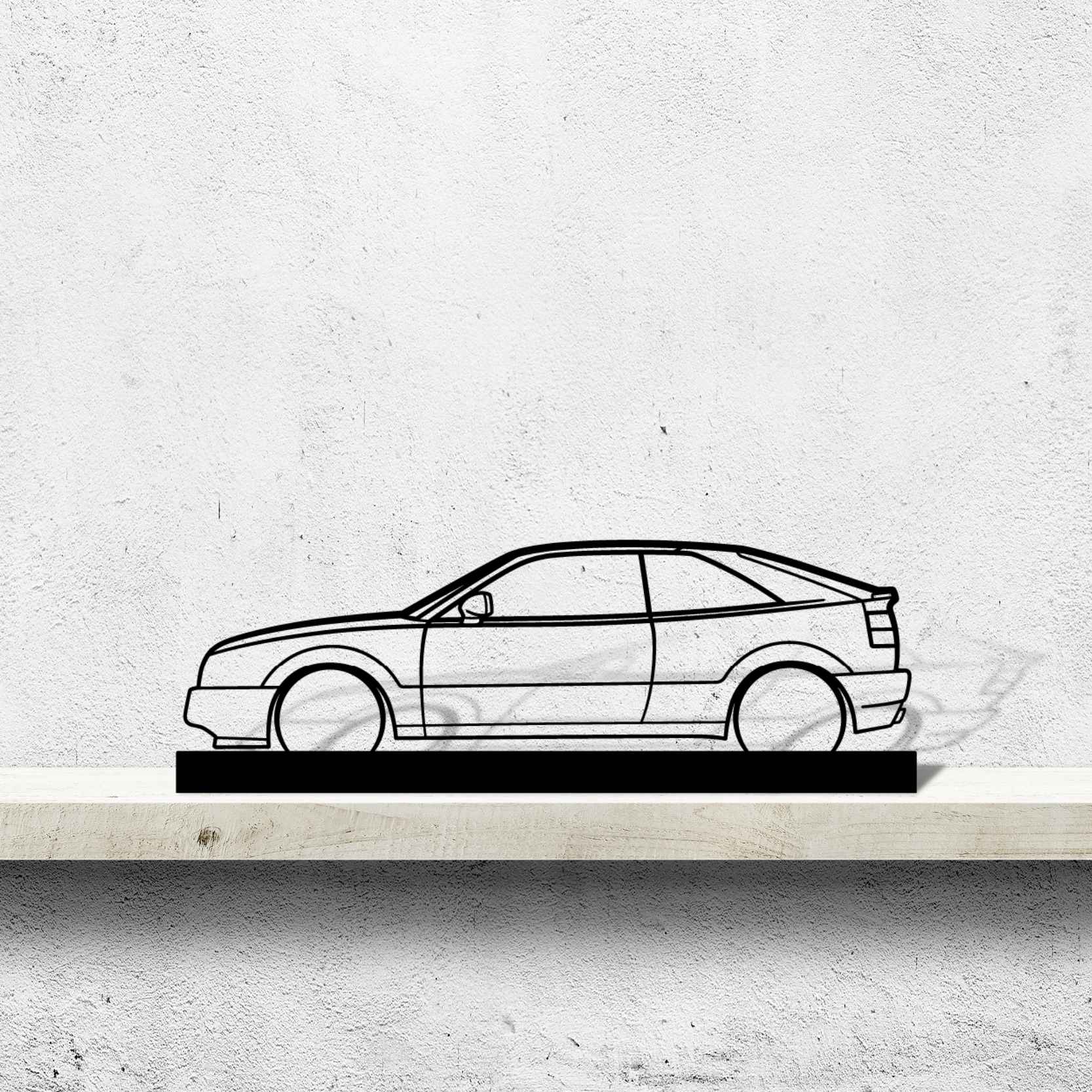 Diese Corrado 1990 Silhouette-Kunstständer aus Metall verleiht Ihrem Schreibtisch, Wohnzimmer oder Ihrer Garagenablage einen einzigartigen Look, der die Aufmerksamkeit aller Rennsport- und Autoliebhaber auf sich zieht und Ihrem Wohndesign eine subtile Note verleiht.