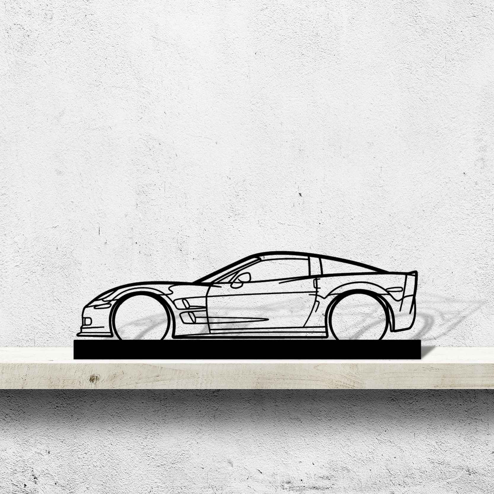 Diese Corvette C6 ZR1 Silhouette-Kunstständer aus Metall verleiht Ihrem Schreibtisch, Wohnzimmer oder Ihrer Garagenablage einen einzigartigen Look, der die Aufmerksamkeit aller Rennsport- und Autoliebhaber auf sich zieht und Ihrem Wohndesign eine subtile Note verleiht.
