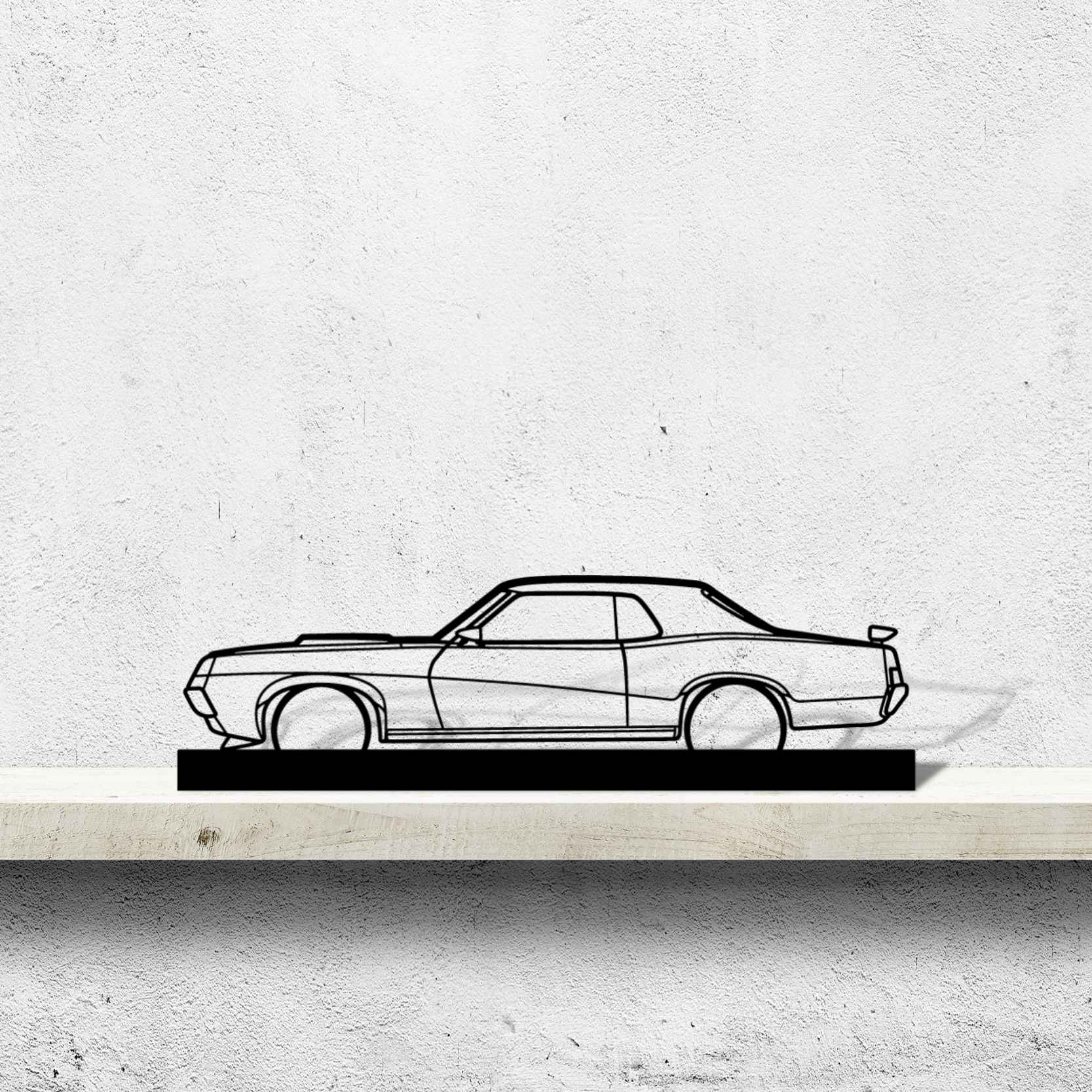 Diese Cougar Eliminator 1969 Silhouette-Kunstständer aus Metall verleiht Ihrem Schreibtisch, Wohnzimmer oder Ihrer Garagenablage einen einzigartigen Look, der die Aufmerksamkeit aller Rennsport- und Autoliebhaber auf sich zieht und Ihrem Wohndesign eine subtile Note verleiht.