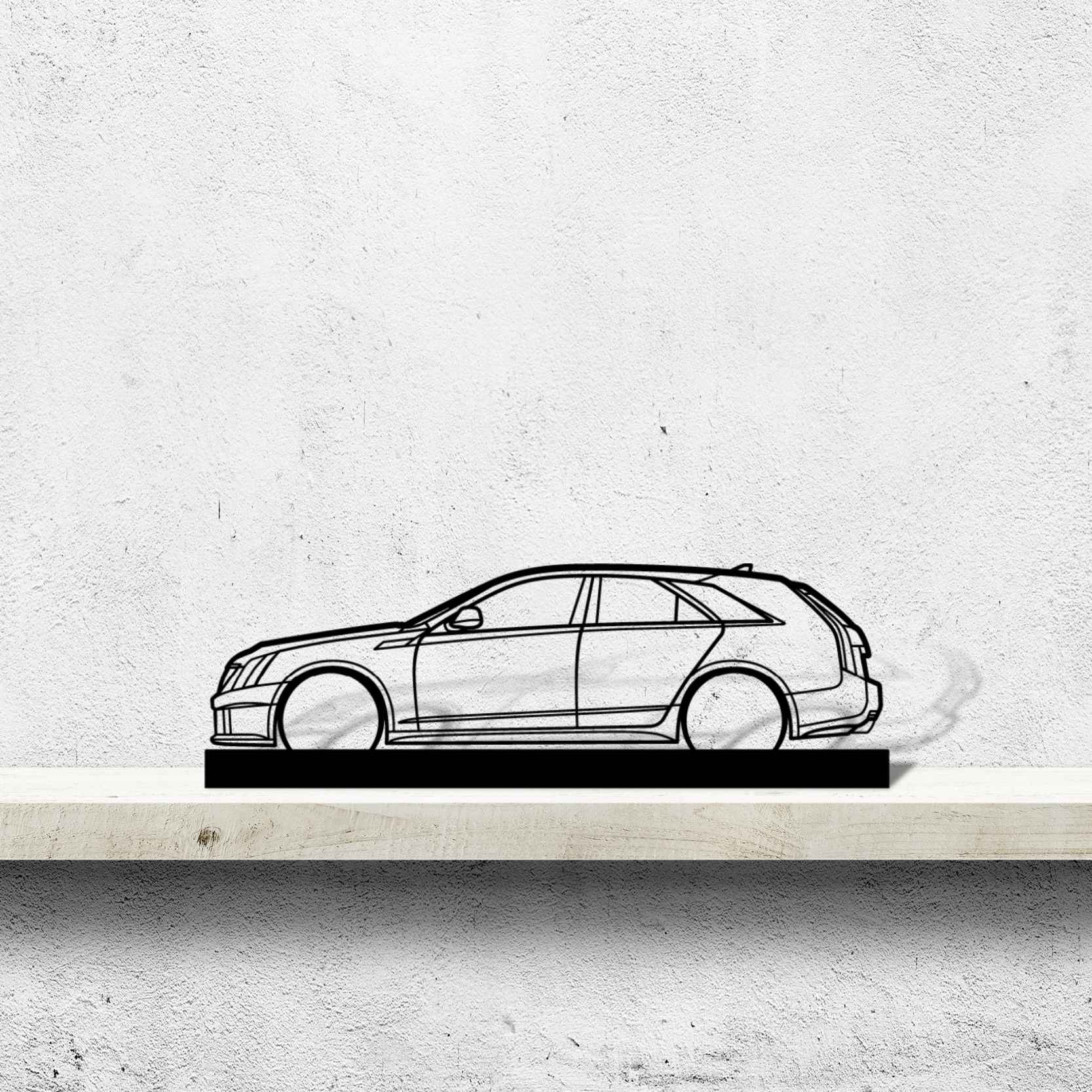 Diese CTS-V WAGON Silhouette-Kunstständer aus Metall verleiht Ihrem Schreibtisch, Wohnzimmer oder Ihrer Garagenablage einen einzigartigen Look, der die Aufmerksamkeit aller Rennsport- und Autoliebhaber auf sich zieht und Ihrem Wohndesign eine subtile Note verleiht.
