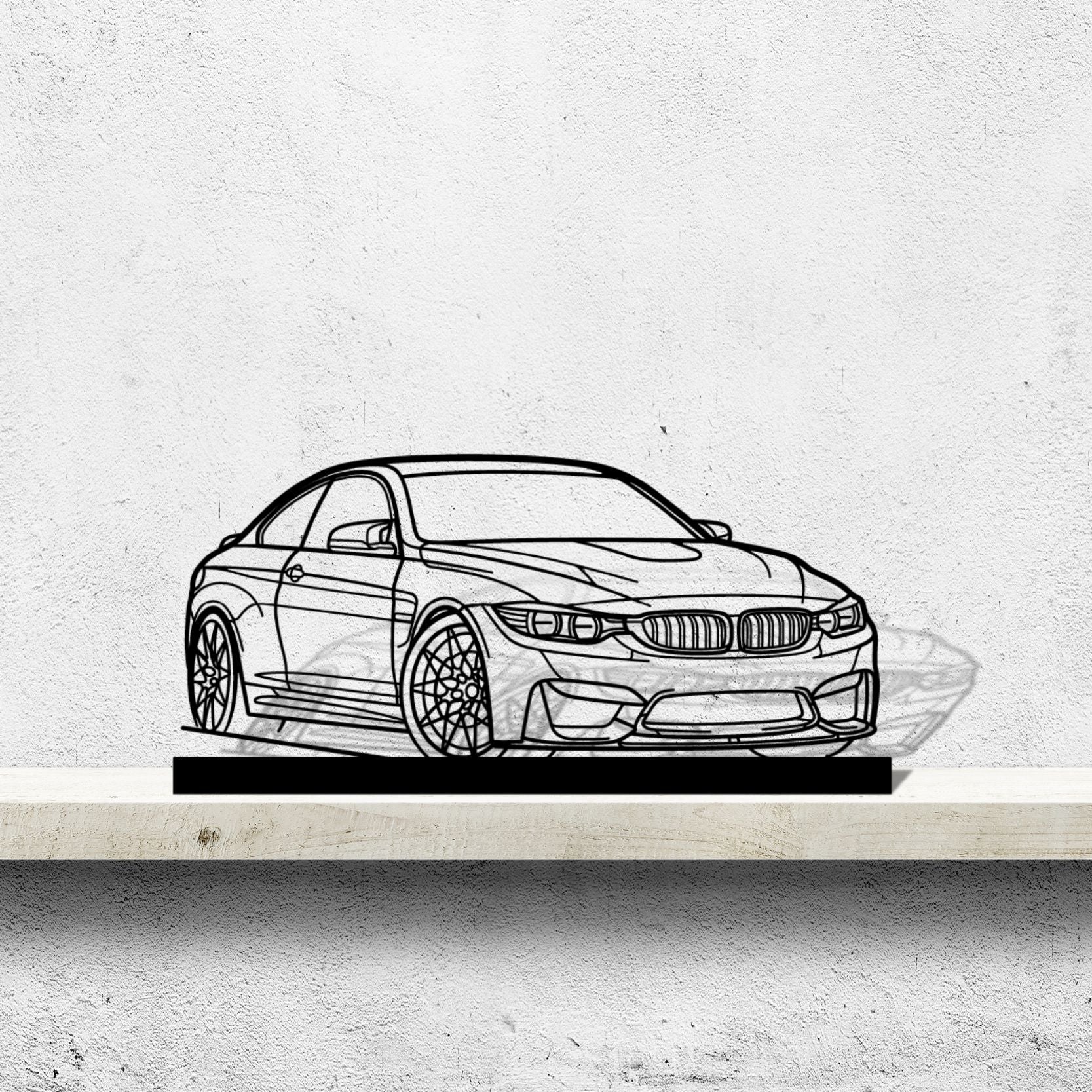 Diese M4 F82 Winkel-Silhouette-Kunstständer aus Metall verleiht Ihrem Schreibtisch, Wohnzimmer oder Ihrer Garagenablage einen einzigartigen Look, der die Aufmerksamkeit aller Rennsport- und Autoliebhaber auf sich zieht und Ihrem Wohndesign eine subtile Note verleiht.