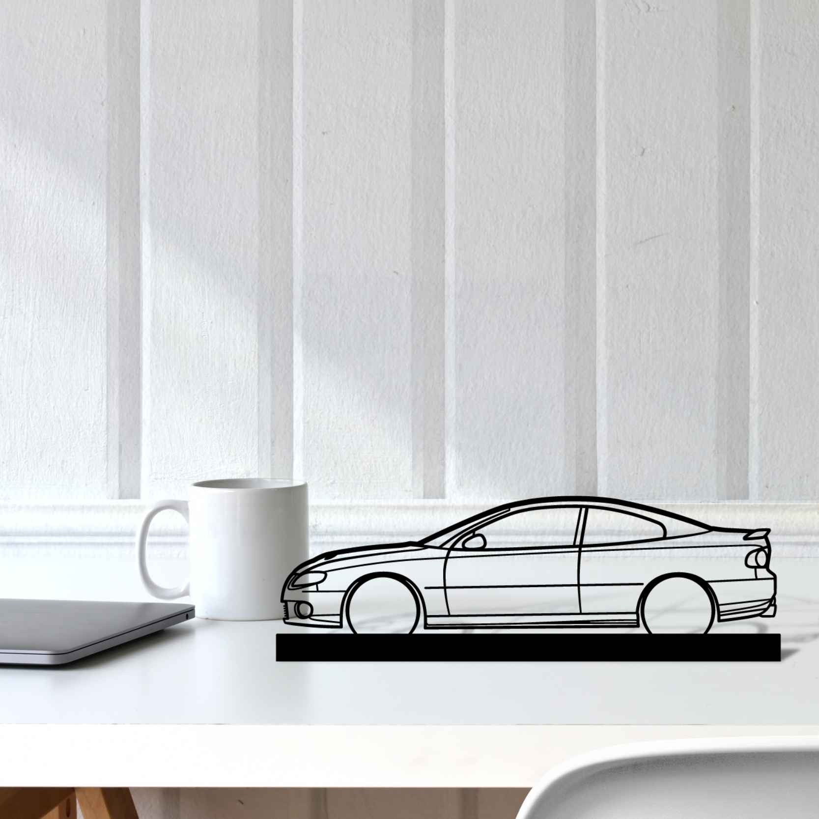 Diese GTO 2006 Silhouette-Kunstständer aus Metall verleiht Ihrem Schreibtisch, Wohnzimmer oder Ihrer Garagenablage einen einzigartigen Look, der die Aufmerksamkeit aller Rennsport- und Autoliebhaber auf sich zieht und Ihrem Wohndesign eine subtile Note verleiht.