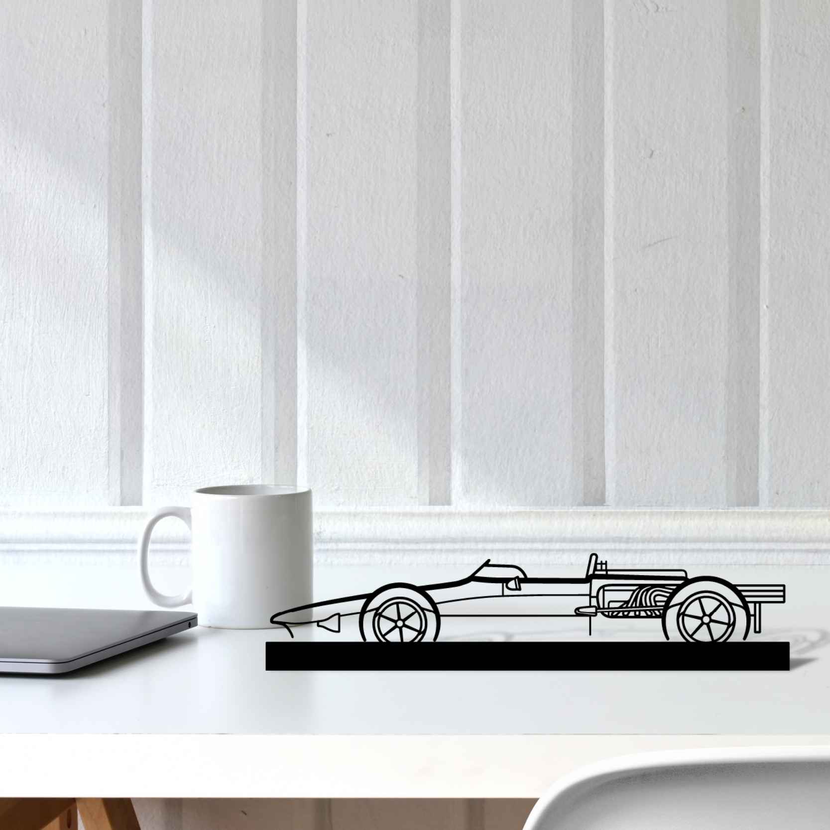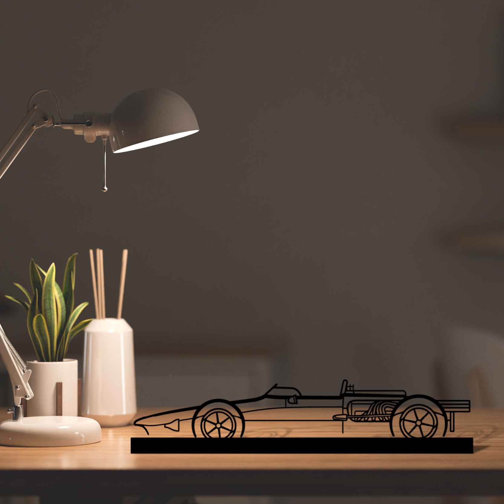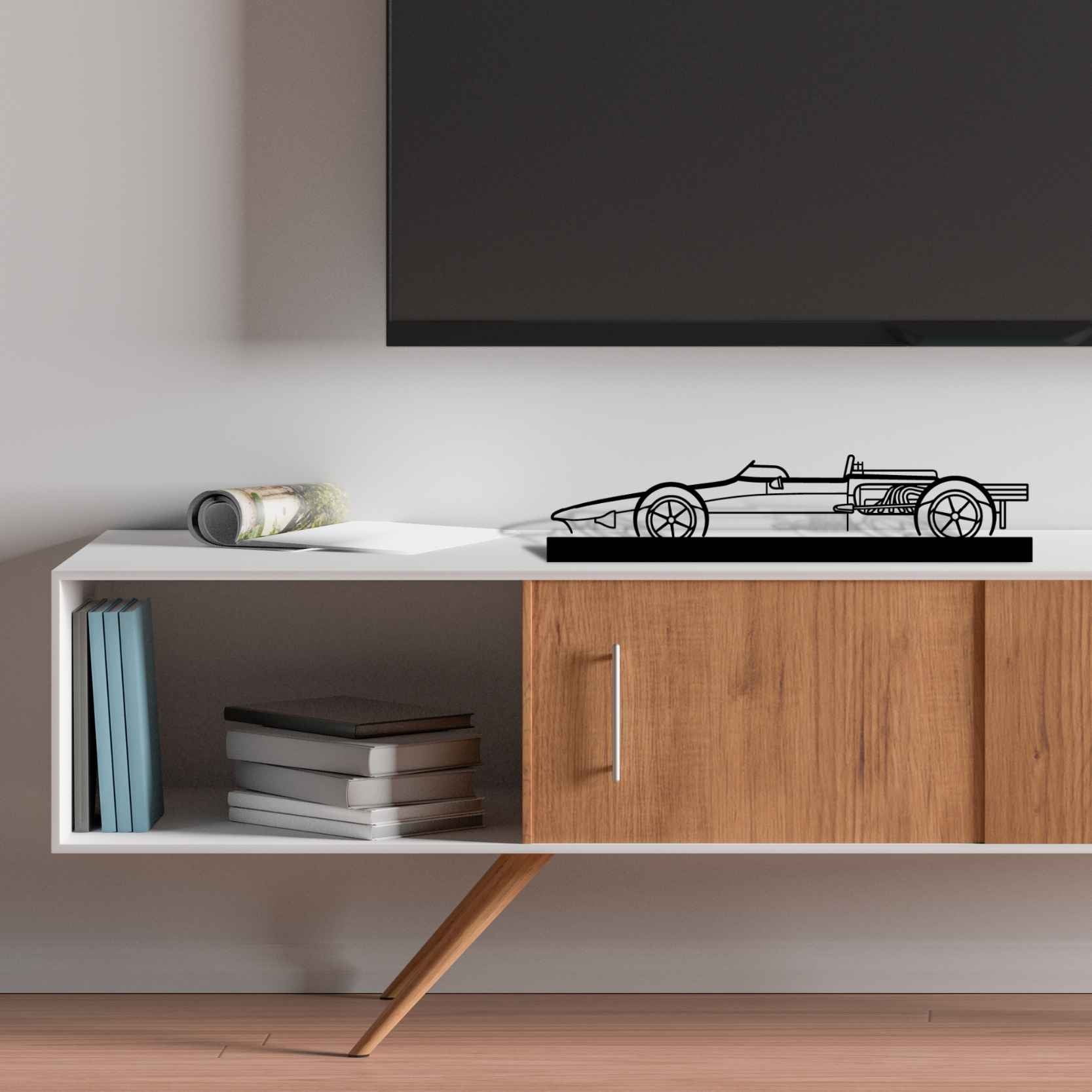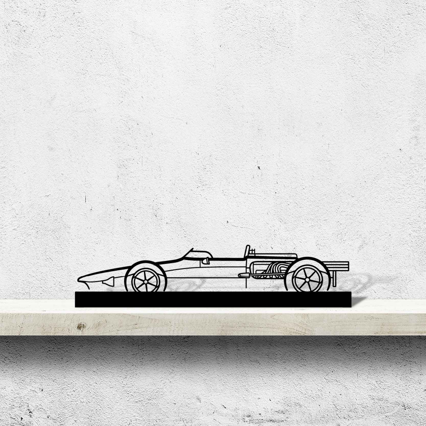Diese Gurney Eagle 1967 Silhouette-Kunstständer aus Metall verleiht Ihrem Schreibtisch, Wohnzimmer oder Ihrer Garagenablage einen einzigartigen Look, der die Aufmerksamkeit aller Rennsport- und Autoliebhaber auf sich zieht und Ihrem Wohndesign eine subtile Note verleiht.