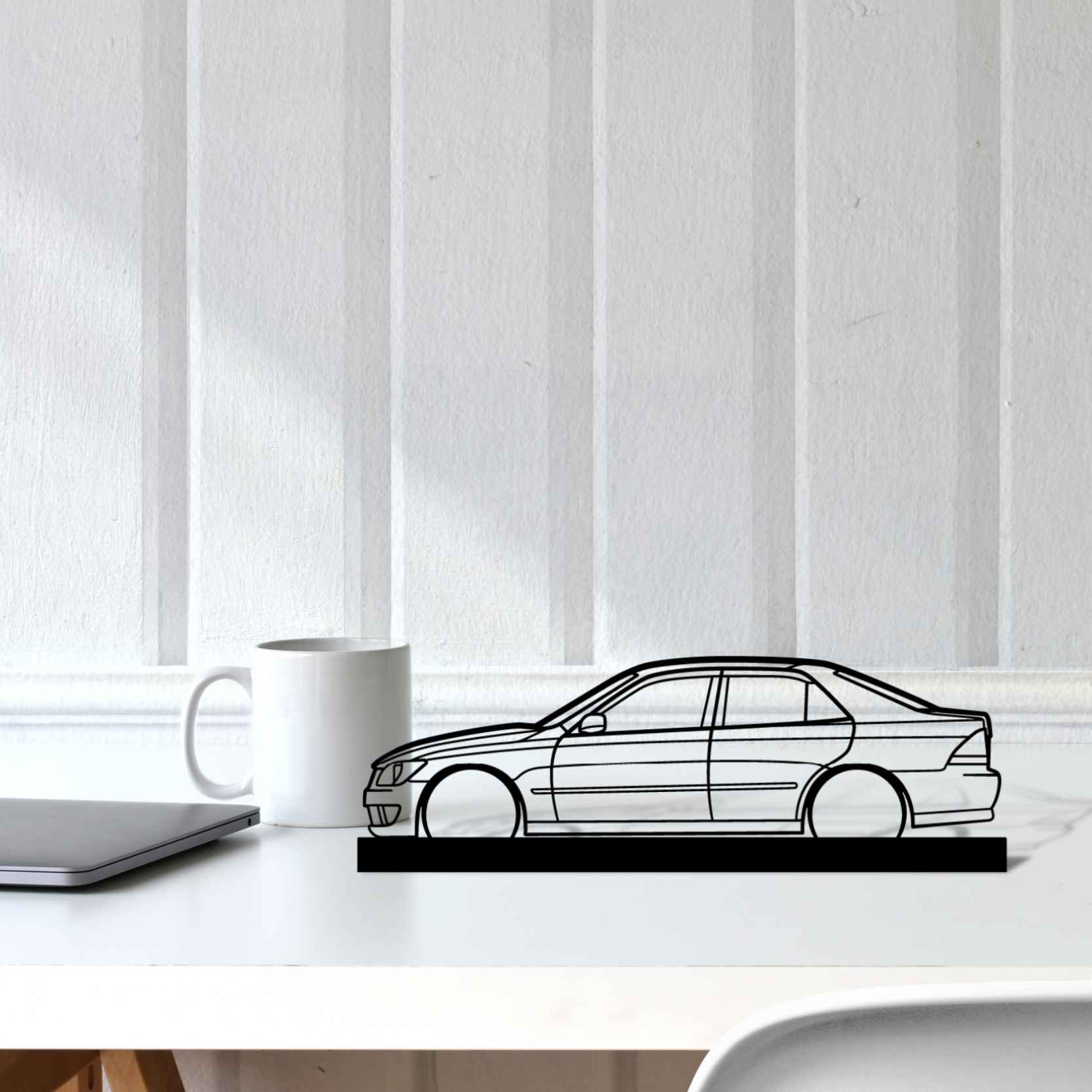 Diese IS200 1999 Silhouette-Kunstständer aus Metall verleiht Ihrem Schreibtisch, Wohnzimmer oder Ihrer Garagenablage einen einzigartigen Look, der die Aufmerksamkeit aller Rennsport- und Autoliebhaber auf sich zieht und Ihrem Wohndesign eine subtile Note verleiht.