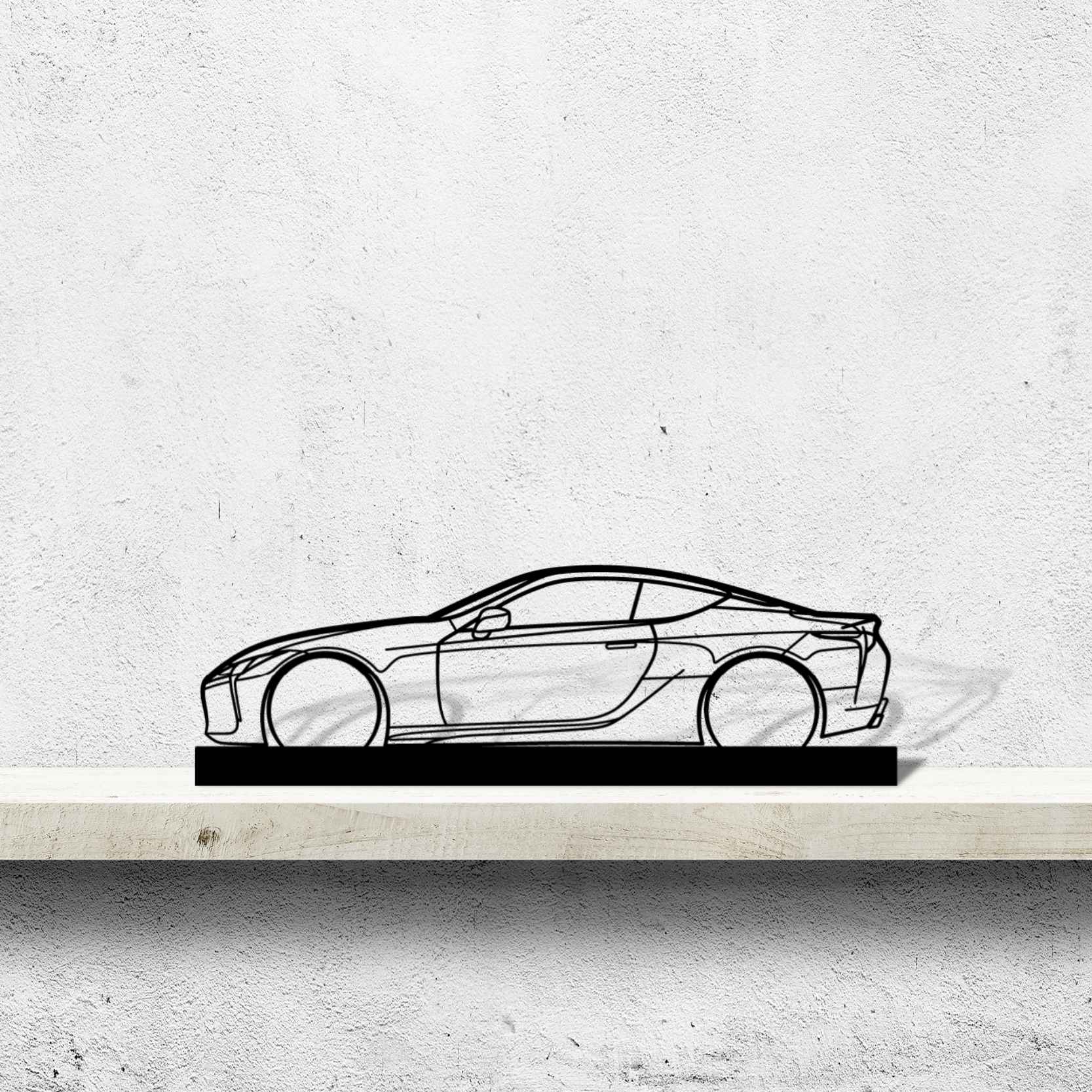 Diese LC Silhouette-Kunstständer aus Metall verleiht Ihrem Schreibtisch, Wohnzimmer oder Ihrer Garagenablage einen einzigartigen Look, der die Aufmerksamkeit aller Rennsport- und Autoliebhaber auf sich zieht und Ihrem Wohndesign eine subtile Note verleiht.