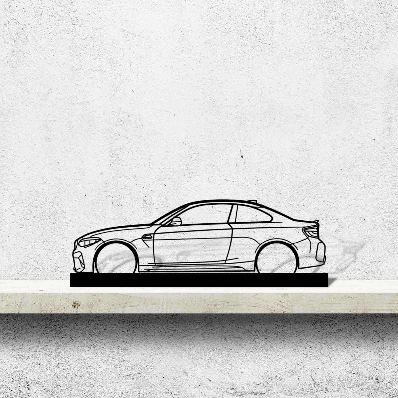 Diese M2 F87 Comp 2018 Silhouette-Kunstständer aus Metall verleiht Ihrem Schreibtisch, Wohnzimmer oder Ihrer Garagenablage einen einzigartigen Look, der die Aufmerksamkeit aller Rennsport- und Autoliebhaber auf sich zieht und Ihrem Wohndesign eine subtile Note verleiht.