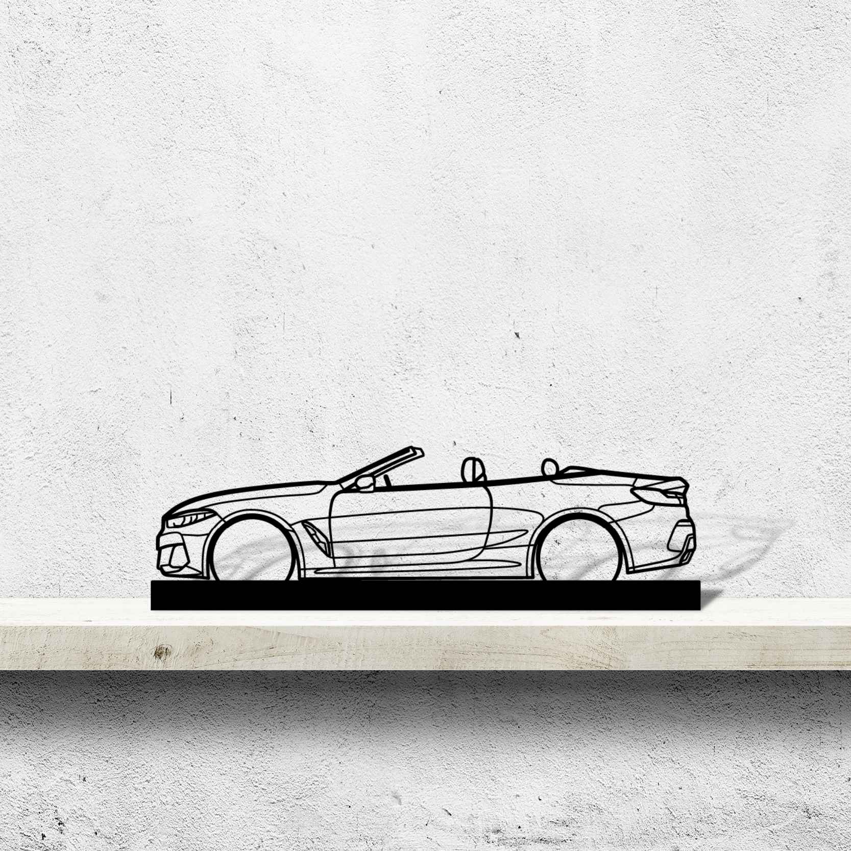 Diese M850i Convertible Silhouette-Kunstständer aus Metall verleiht Ihrem Schreibtisch, Wohnzimmer oder Ihrer Garagenablage einen einzigartigen Look, der die Aufmerksamkeit aller Rennsport- und Autoliebhaber auf sich zieht und Ihrem Wohndesign eine subtile Note verleiht.