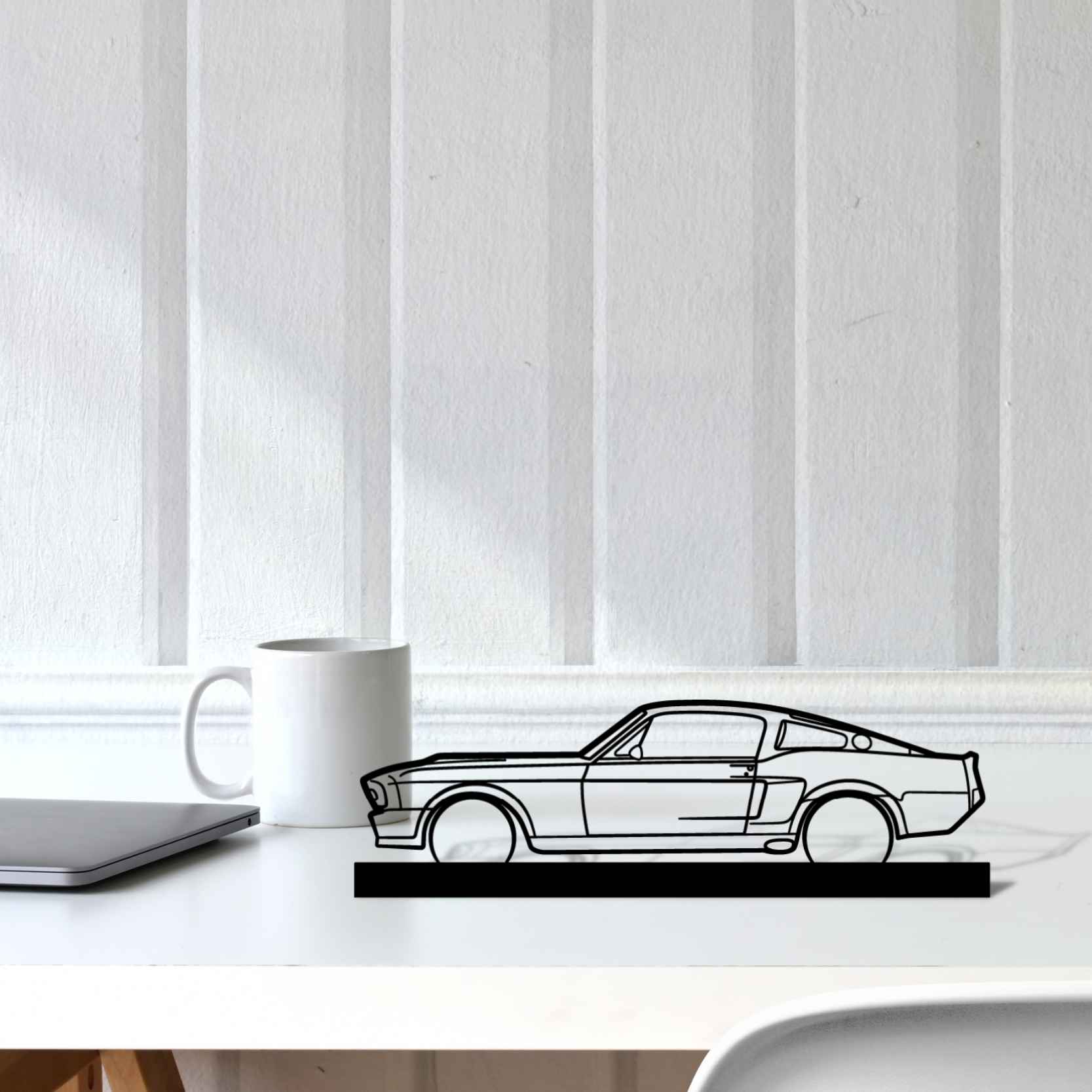 Diese Mustang 1967 Silhouette-Kunstständer aus Metall verleiht Ihrem Schreibtisch, Wohnzimmer oder Ihrer Garagenablage einen einzigartigen Look, der die Aufmerksamkeit aller Rennsport- und Autoliebhaber auf sich zieht und Ihrem Wohndesign eine subtile Note verleiht.