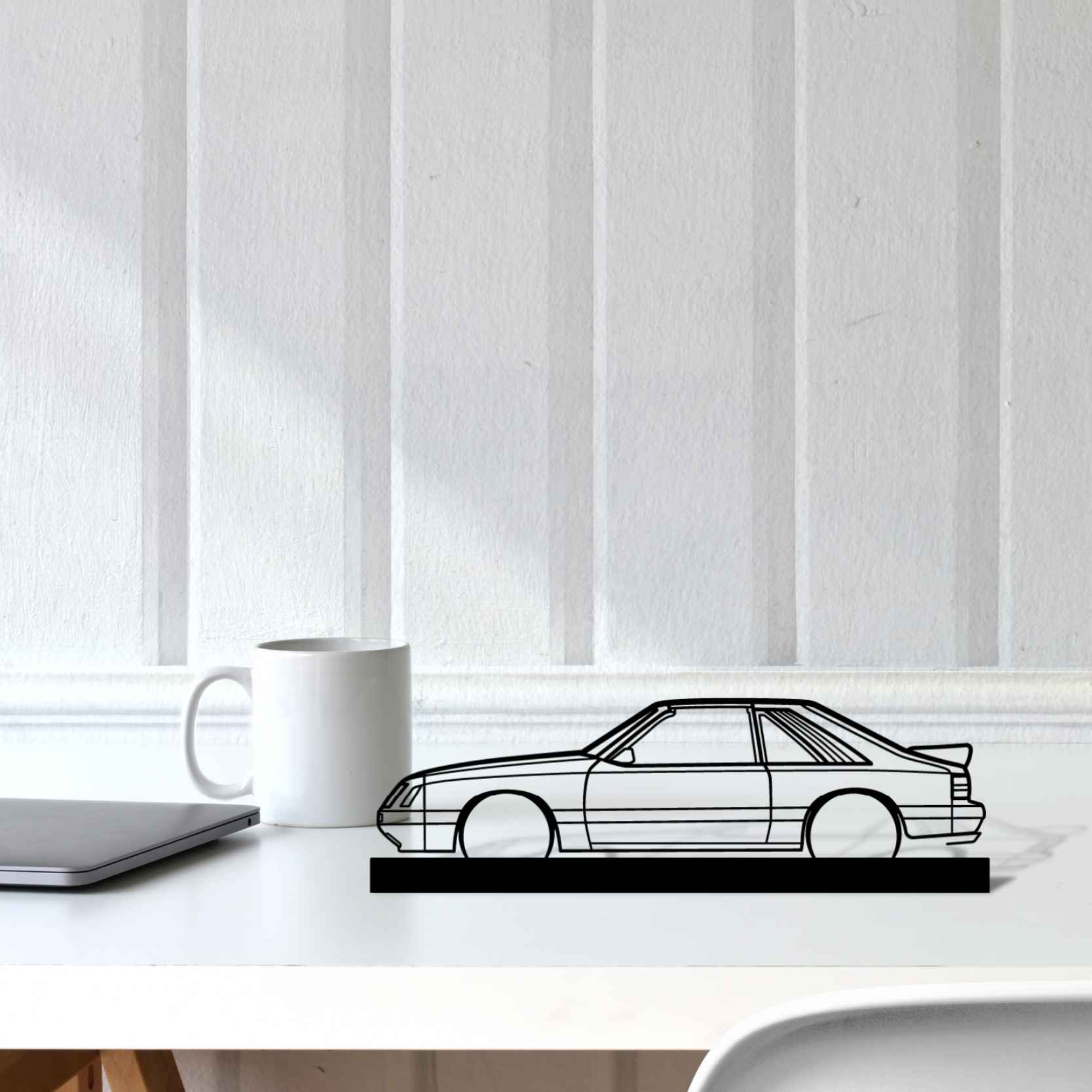 Diese Mustang GT 1985 Silhouette-Kunstständer aus Metall verleiht Ihrem Schreibtisch, Wohnzimmer oder Ihrer Garagenablage einen einzigartigen Look, der die Aufmerksamkeit aller Rennsport- und Autoliebhaber auf sich zieht und Ihrem Wohndesign eine subtile Note verleiht.